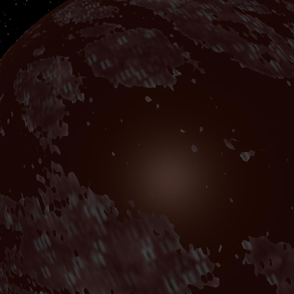 The 2nd moon from Marcous, tinted red from 15 times to amount of iron in the soil and water as Mars.