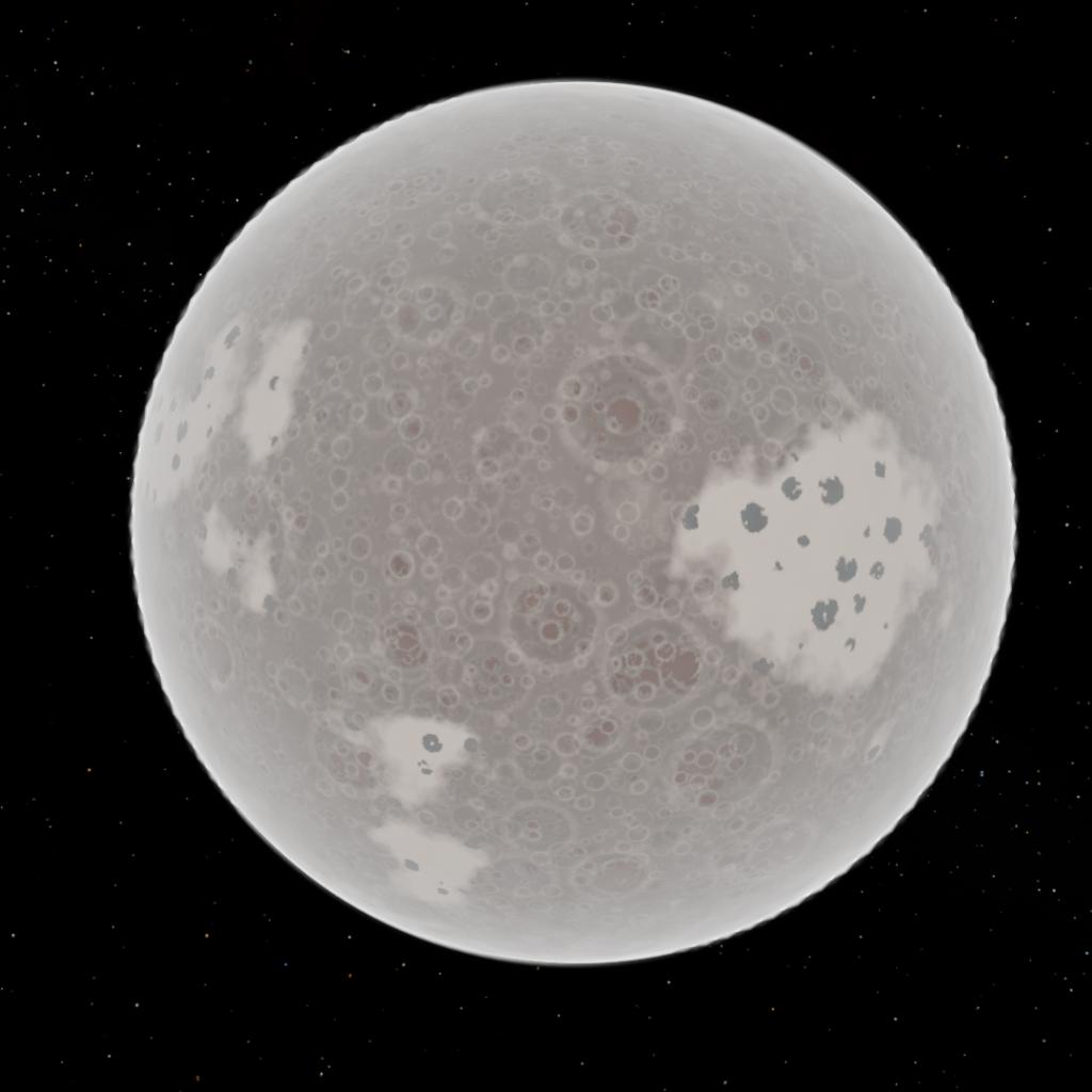 A moderatley sized scorched and barren rocky planet with cratered fields, volcanoes and ash plains with a thin atmosphere on top and some blood-red molten sulfur lakes.