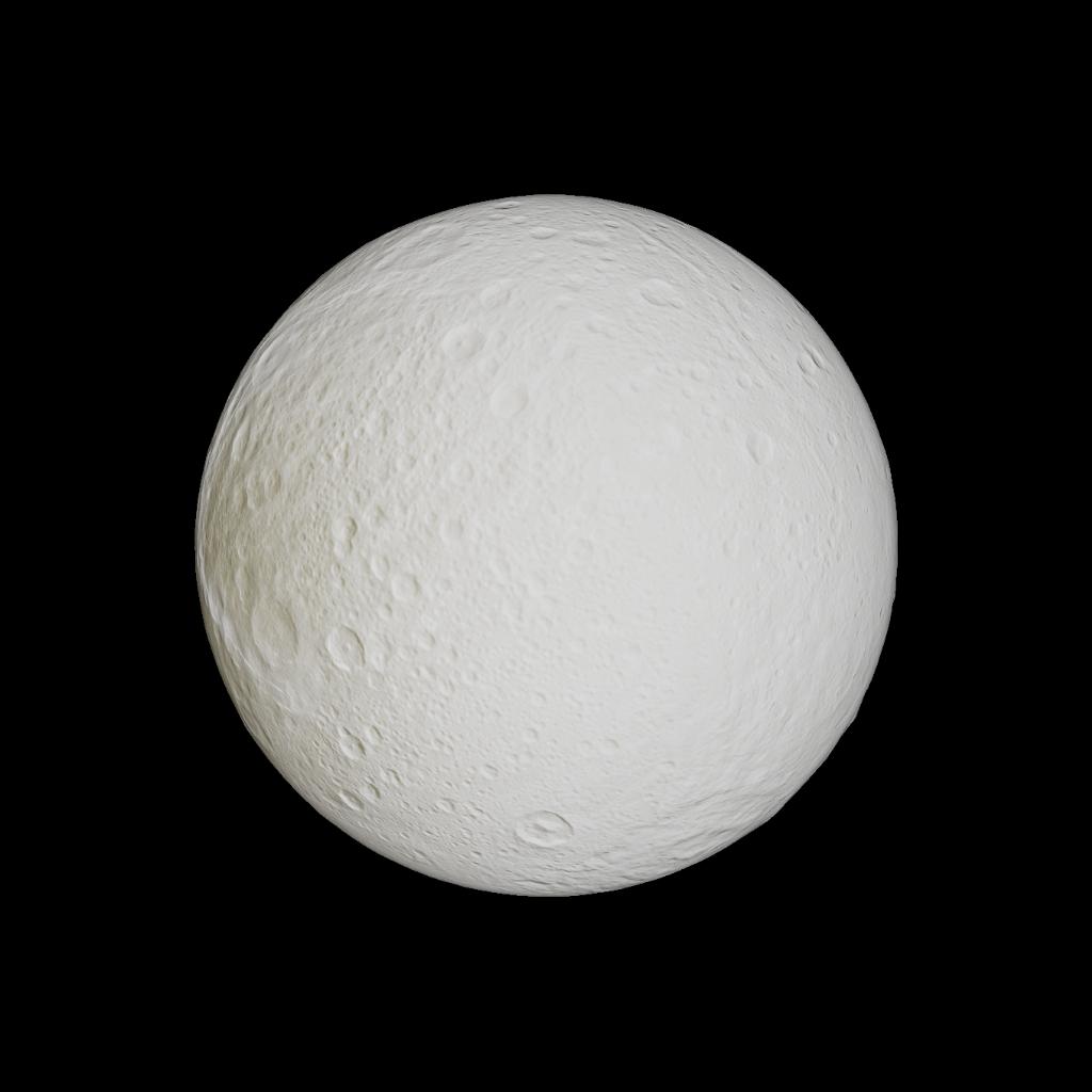 A Moon That Has A Large Grey Scar And It Is The Satellite Of Saturn
