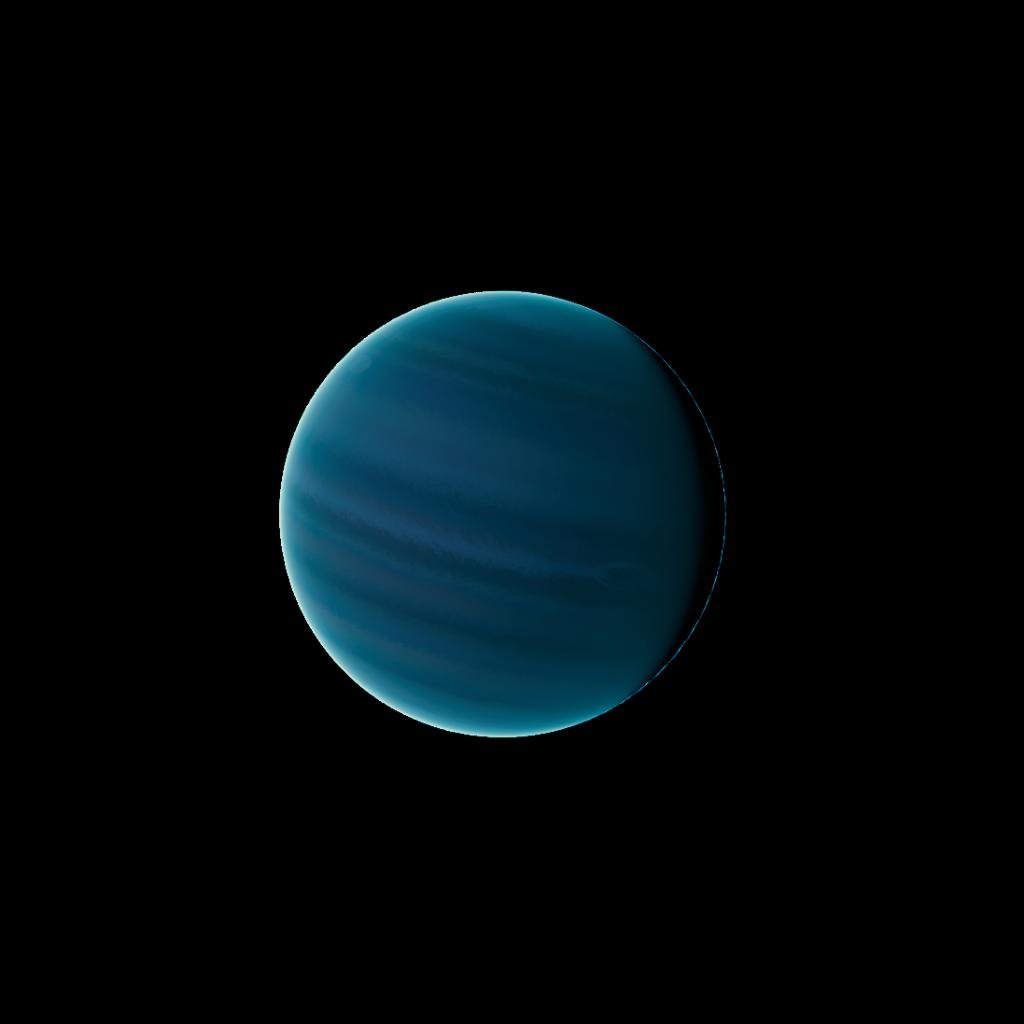 A ringless gas giant with a very chaotic top layer of clouds and enormous storms.