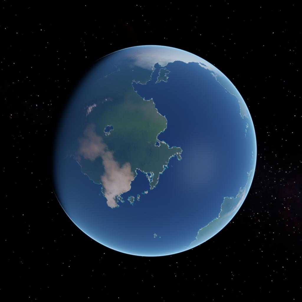 A rocky planet with vast oceans, very diverse biomes and a dense atmosphere, covered in what seems to be vegetation. There is a launch center, a desert base, a mountain base, a hidden structure repurposed by the droods, and an under construction airport.