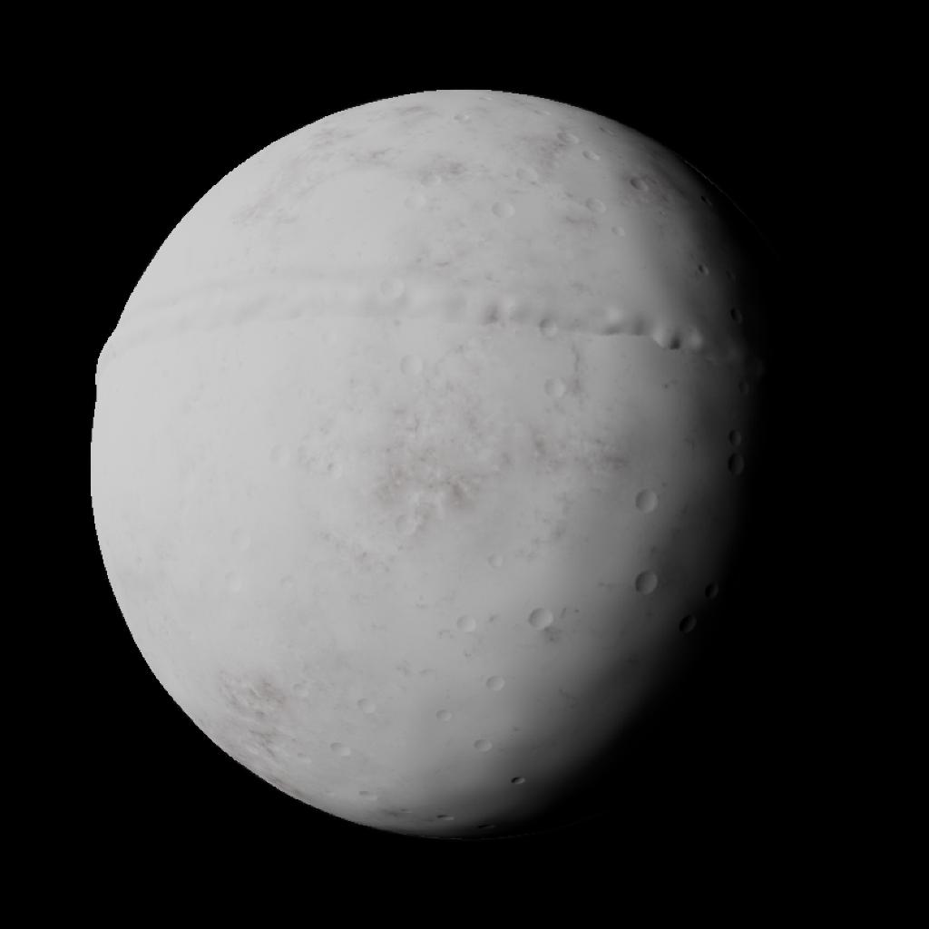 Cerberus is the third, smallest moon of Hades, the moon is much more whiter than the others, so it reflects more light, it has red stains on the surface and an unique equatorial ridge