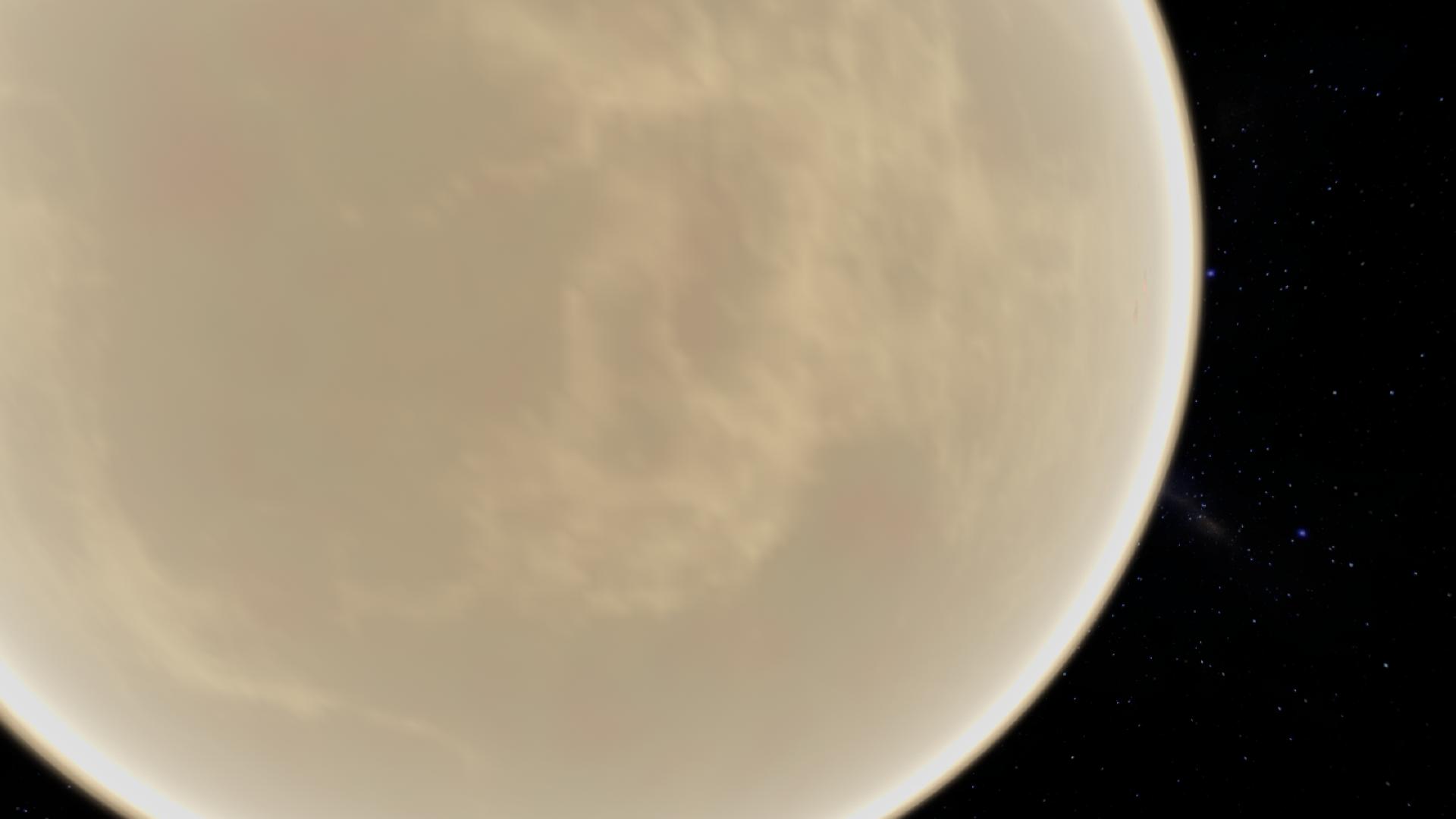 A rocky celestial body with a very thick atmosphere and a surface with very extreme conditions. Jno accurrate Venus with 1/5th its actual scale