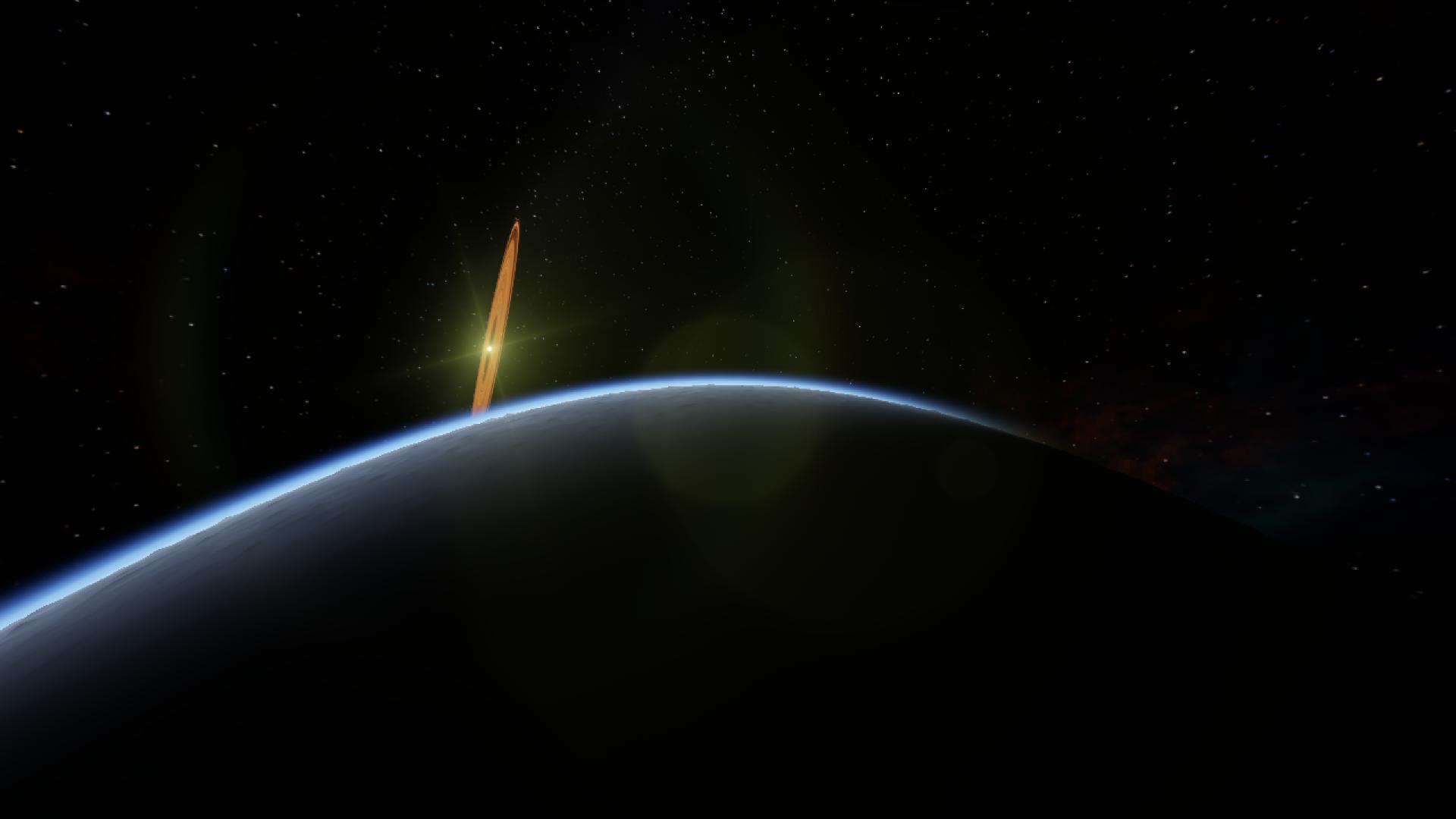 A rocky celestial body covered in dust and craters, with enormous volcanoes and pronounced valles.