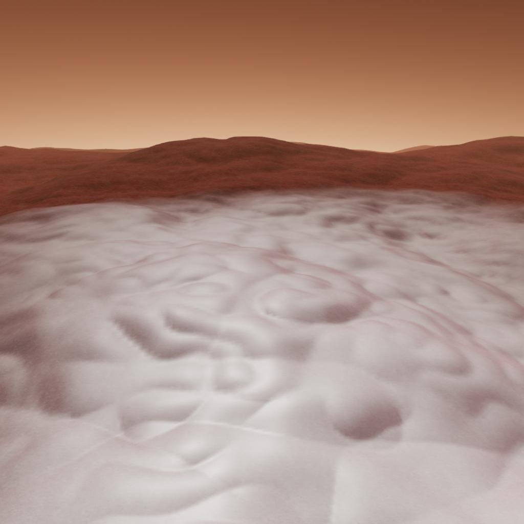 Carbon dioxide (dry ice) snow piles on the highest peaks of this planet. An interesting phenomenon, for sure.