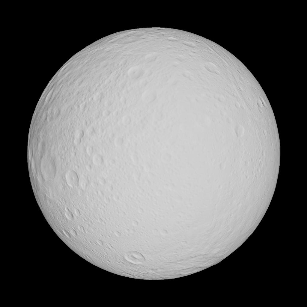 A Moon That Has A Large Grey Scar And It Is The Satellite Of Saturn