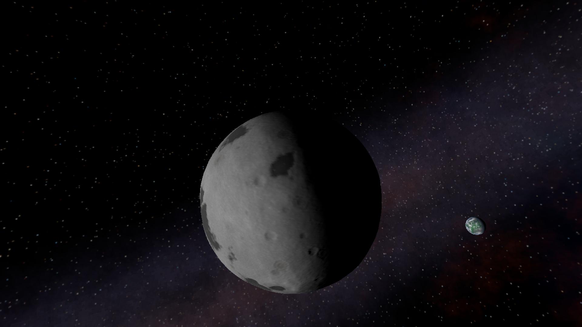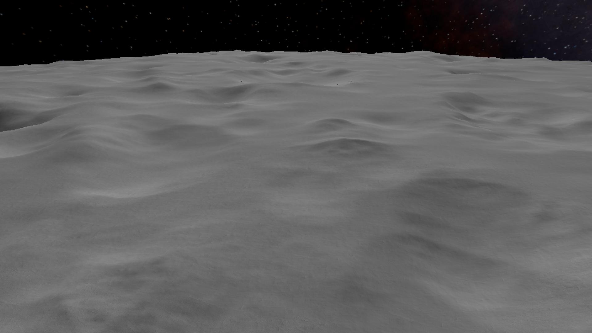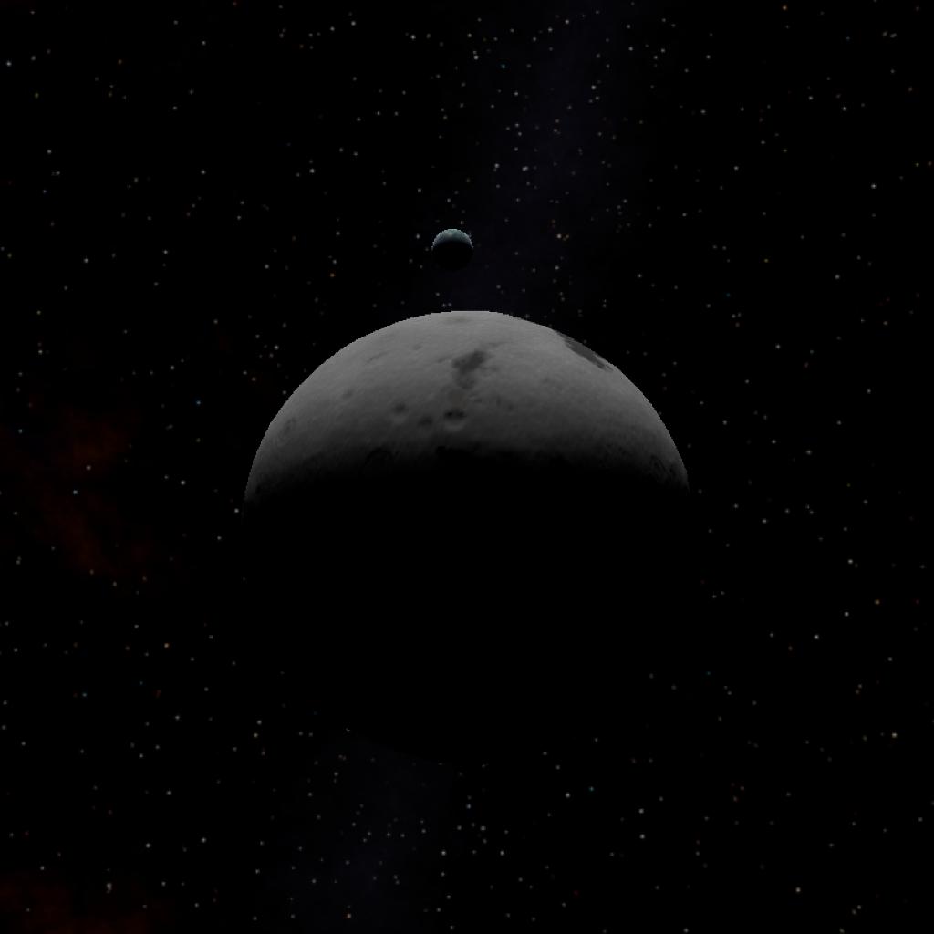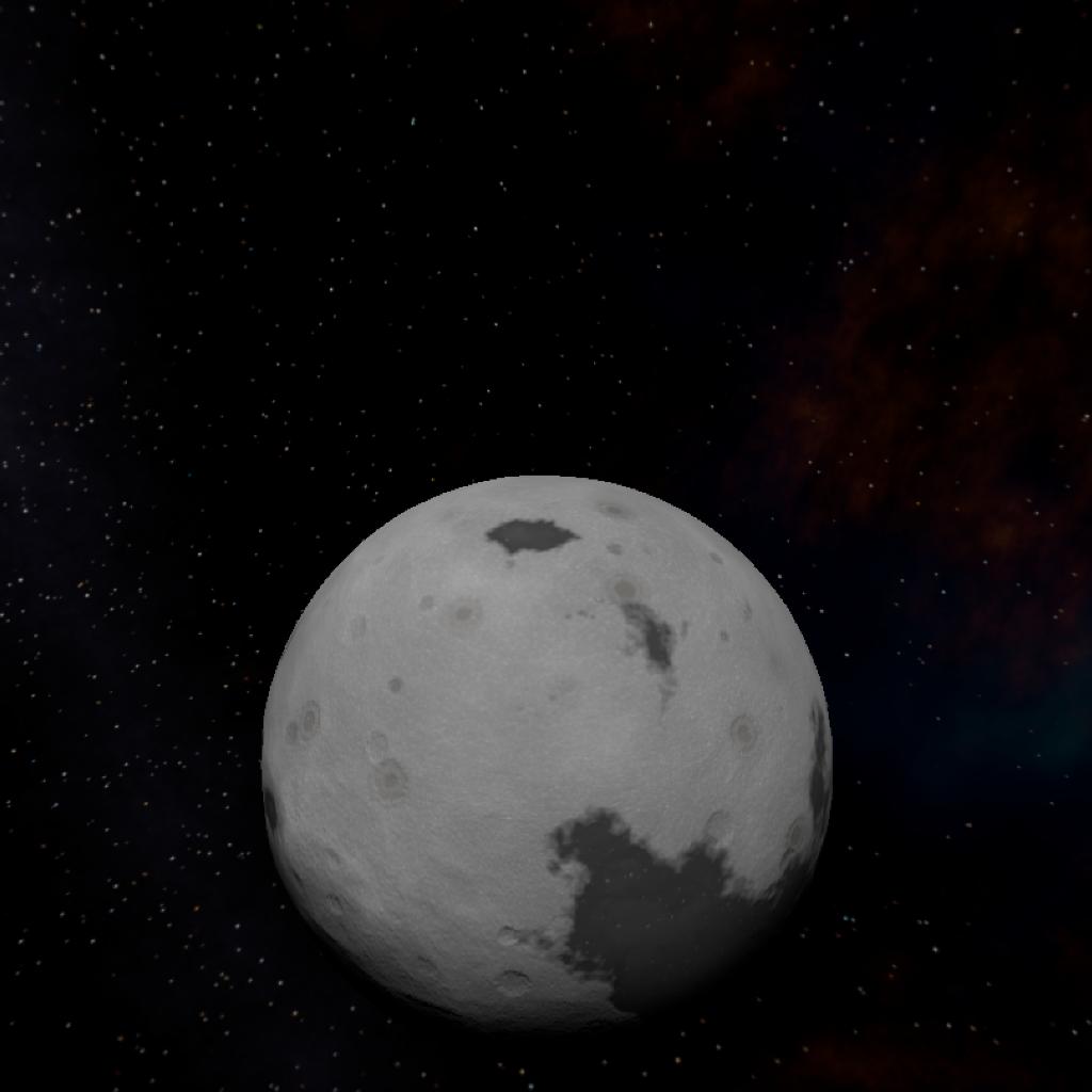 The moon of 4347 D, covered in fine regolith and craters, with some signs of volcanic activity. It's slightly larger than Luna, the Moon of Droo. The moon is also tidally locked to 4347 D.