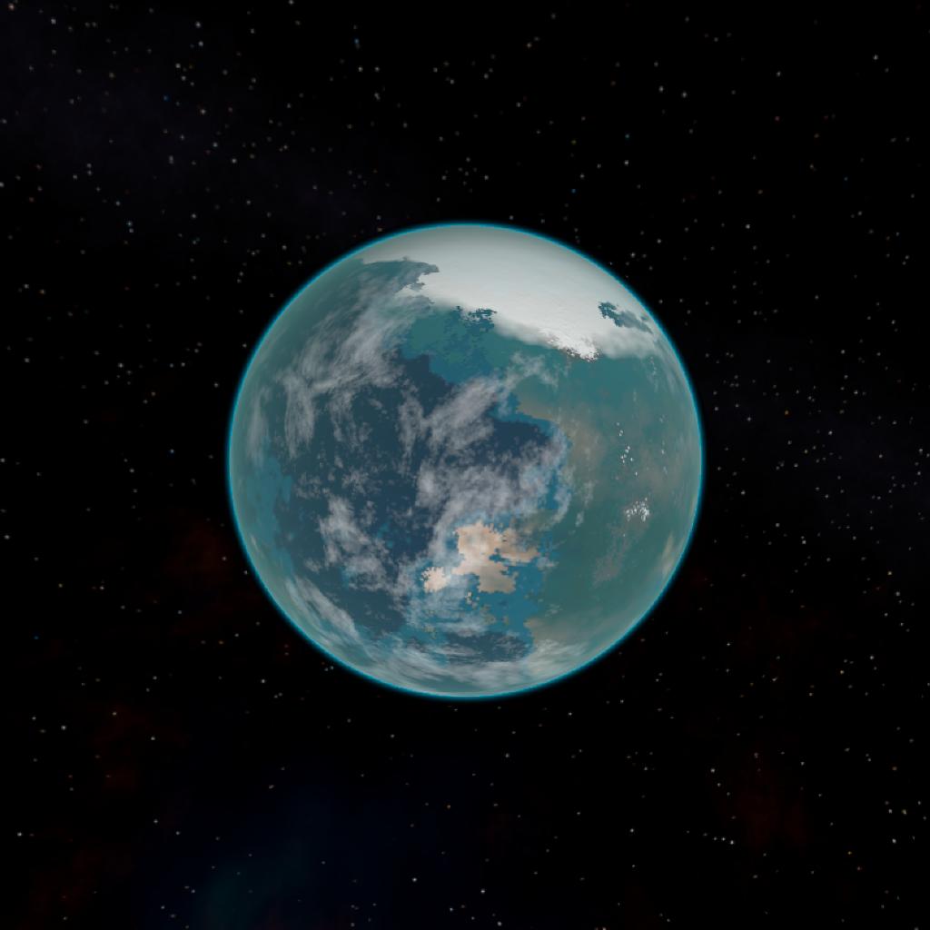A rocky planet with oceans, very diverse biomes and a dense atmosphere, covered in what seems to be vegetation. It's the second habitable planet in the Worlo system.