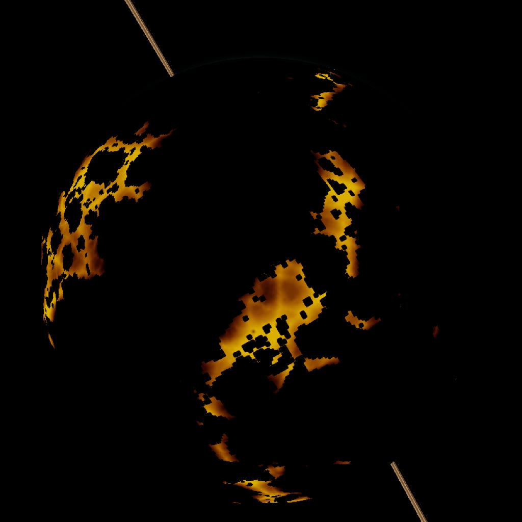 Hecery... one of the glowing gems of the Erecur system, but this planet is newly formed, and with spectacular ring systems it's looking very good, due to the planet being newly formed its atmosphere is covered in mostly helium, hydrogen, and iron, giving its oceans and atmosphere a red color, the glowing spots on this planet hasnt cooled down yet, and its ring system is still raining down.