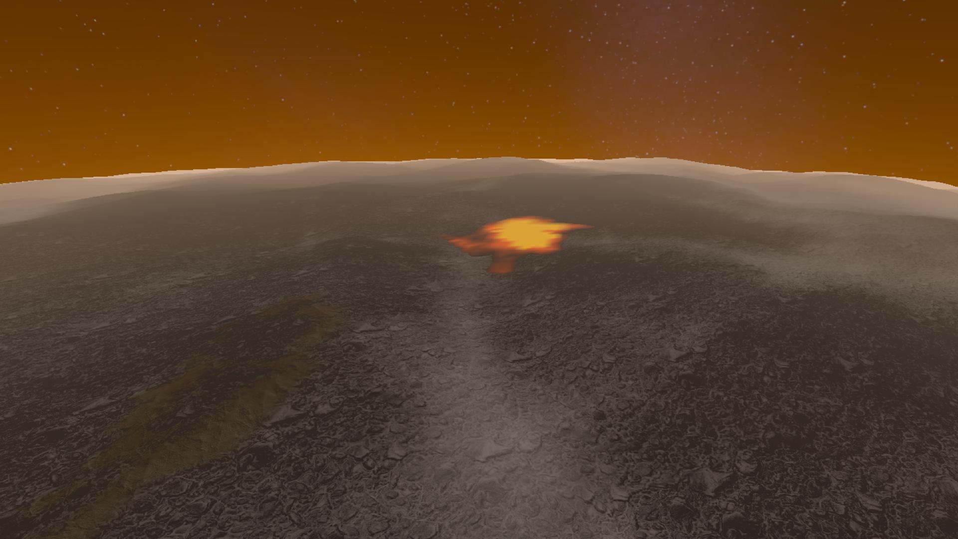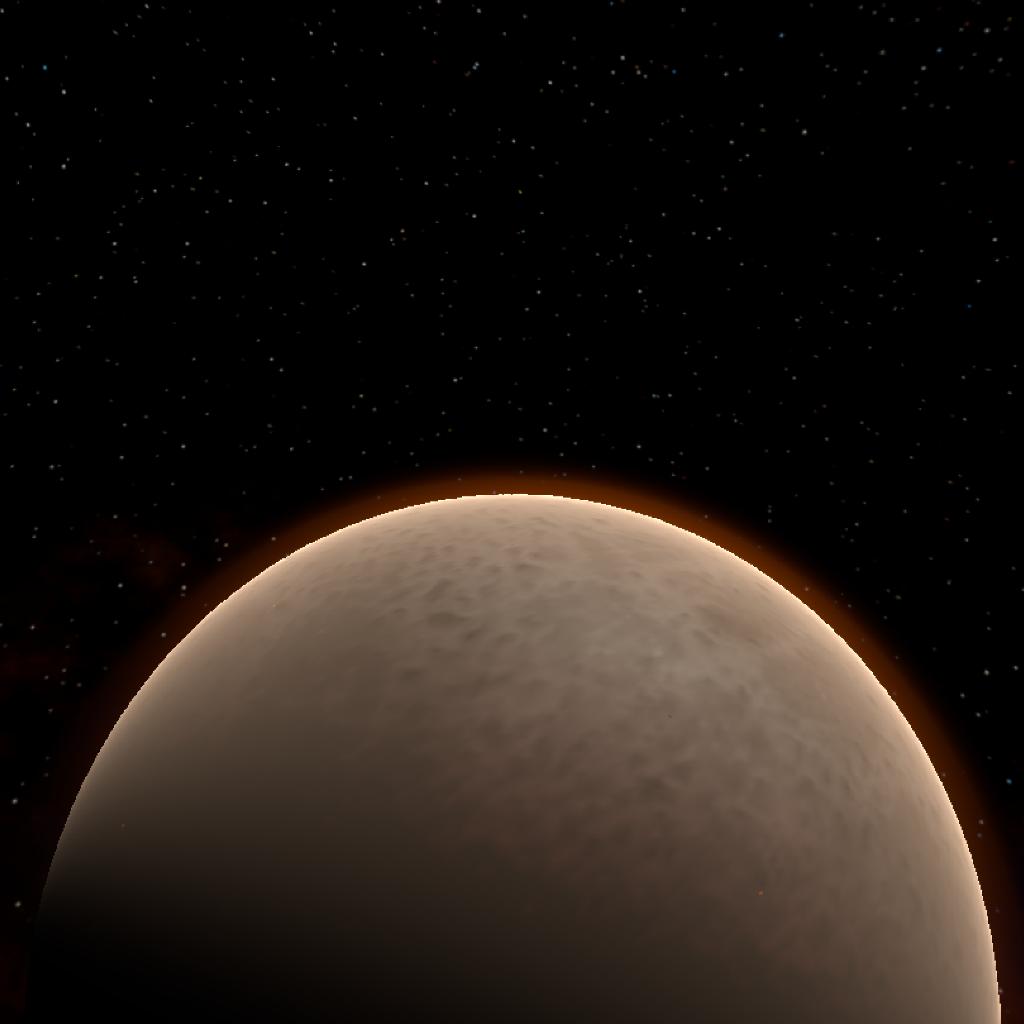 A Rocky celestial body with an atmosphere and high volcanic activity under the surface. The crust is covered in dark volcanic patches. You can find some lava lakes still active on the surface. Calios Is the second closed planet to Worlo but never became able to house life because of it's geology,absence of water and proximity to Worlo.