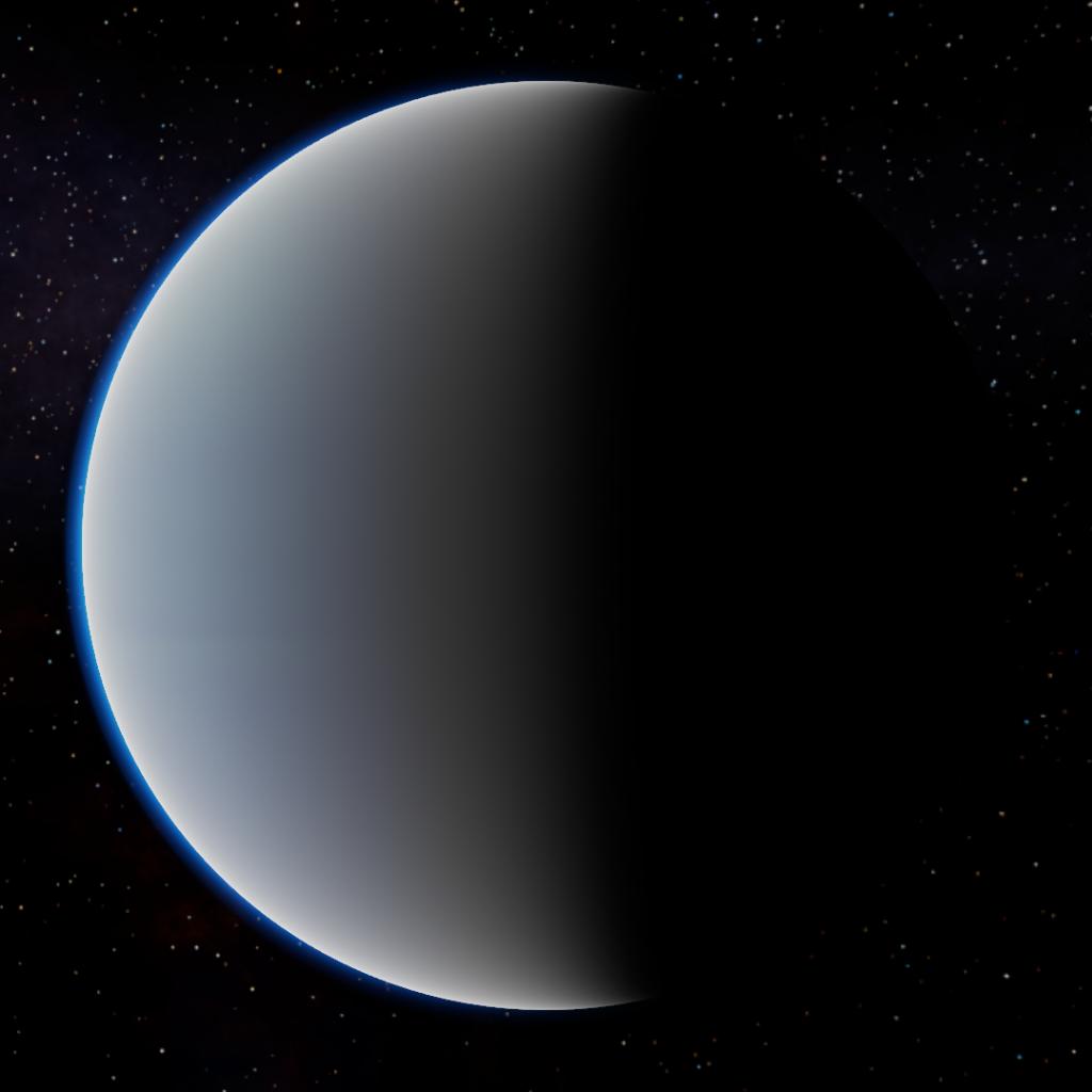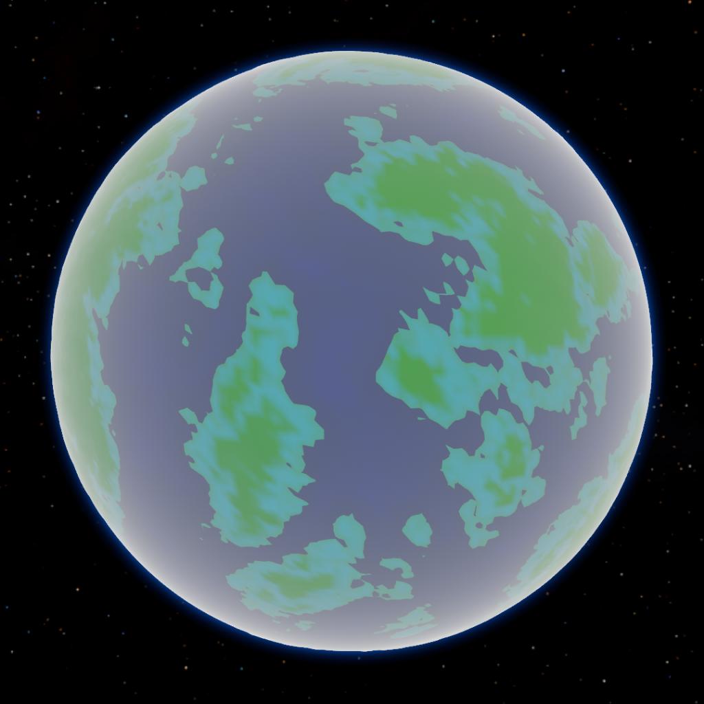 A small habitable moon of a moon with an ocean and massive blue clouds that are made of water vapor. In the oceans, there is microbial life, and on land, there are many small plants. Due to the clouds and the bumpy surface here, landing may be difficult, but thankfully there's a base with a launch pad that can guide you to the surface near the base. I recommend you to not attempt landing anywhere else (unless you're a pro of course).