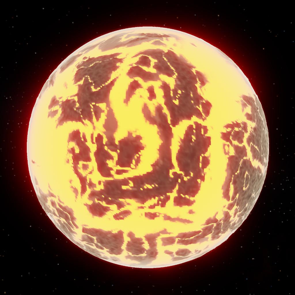 A rocky celestial body covered in cracks containing rivers of lava with a very irregular crust.