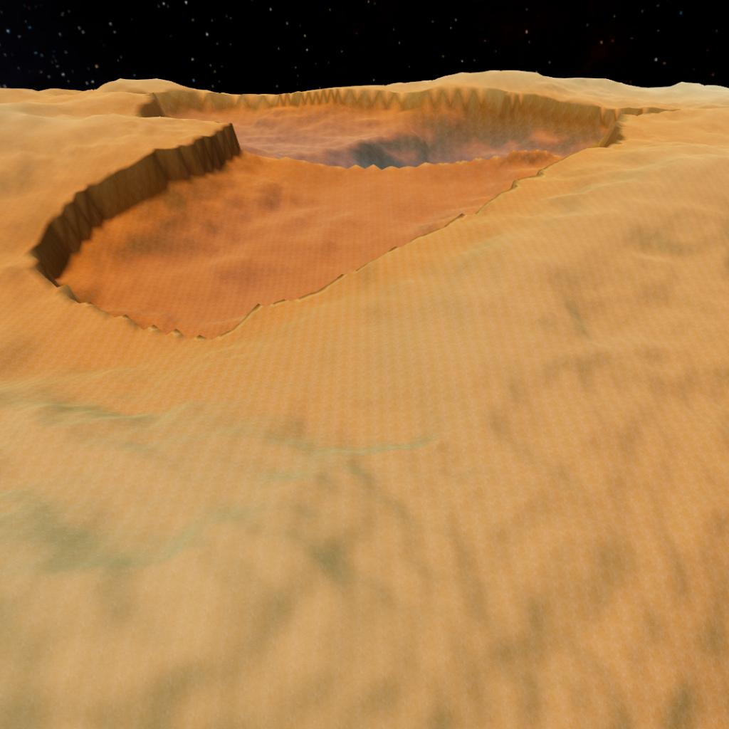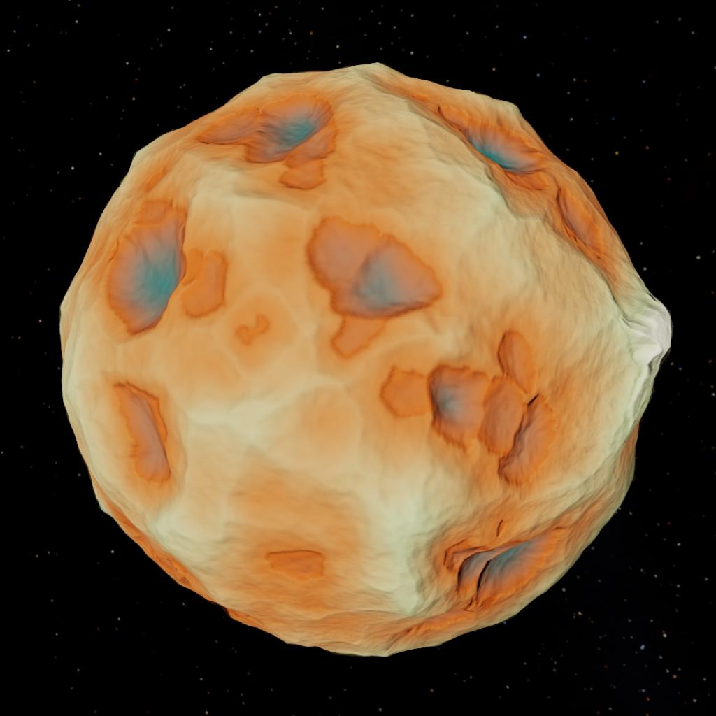 It started out Pol-like but then devolved into this mess. I gave it an original color palette, it looks like a moldy pizza now. Definitely would be fun to explore with a rover minus the steep drops around the red/green areas.