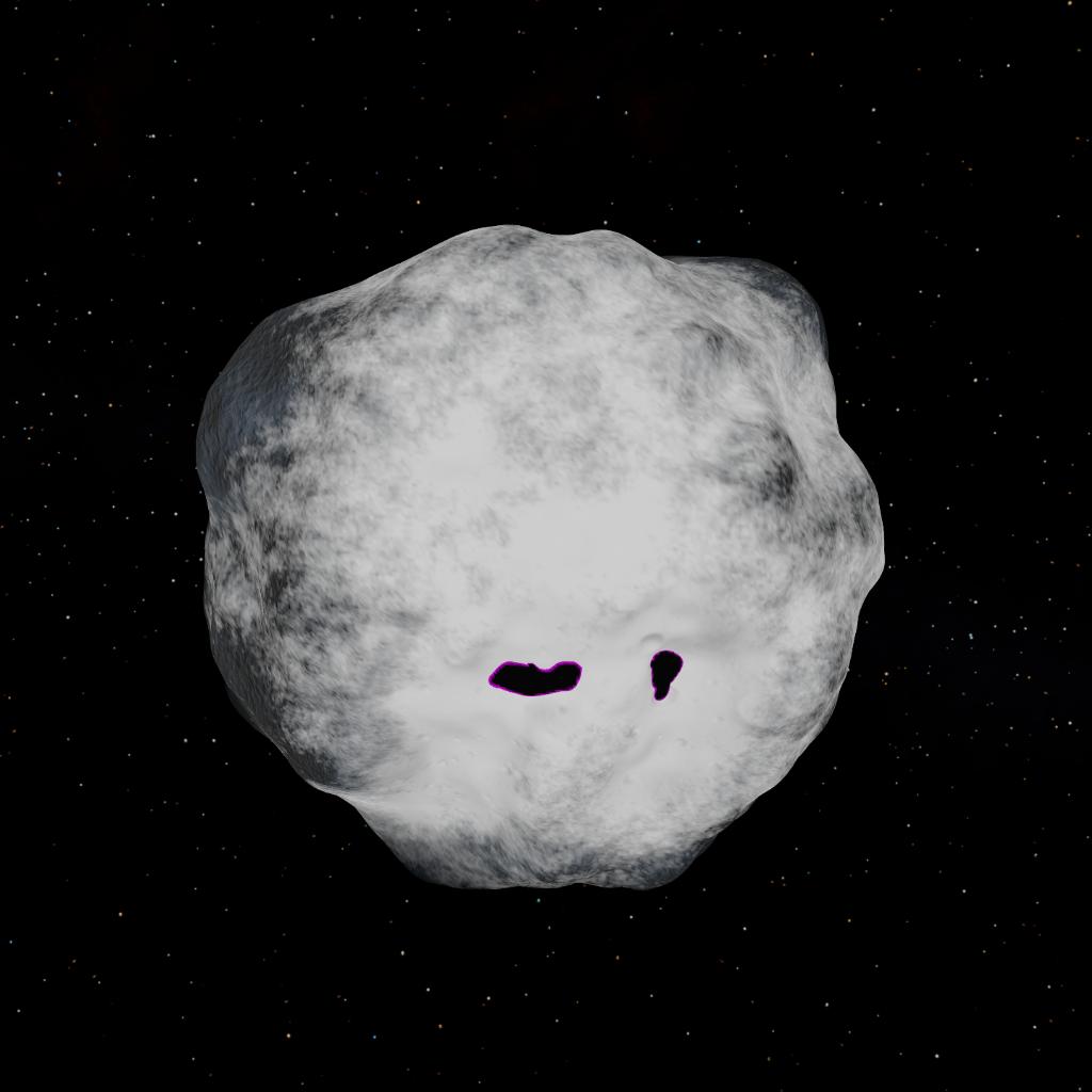 a captured asteroid from interstellar space orbiting luniauari. it has 2 pools of a strange substance with rather weird properties.