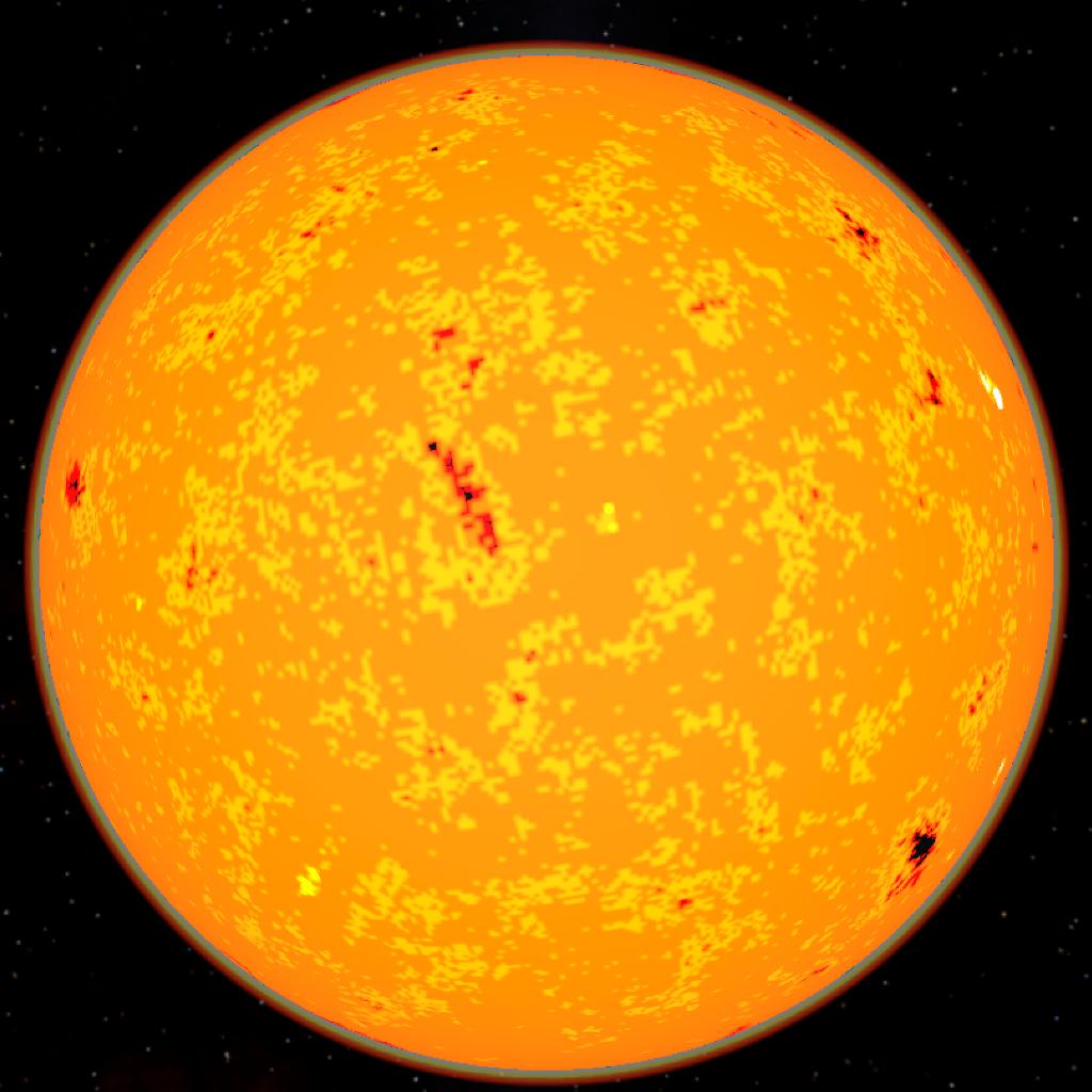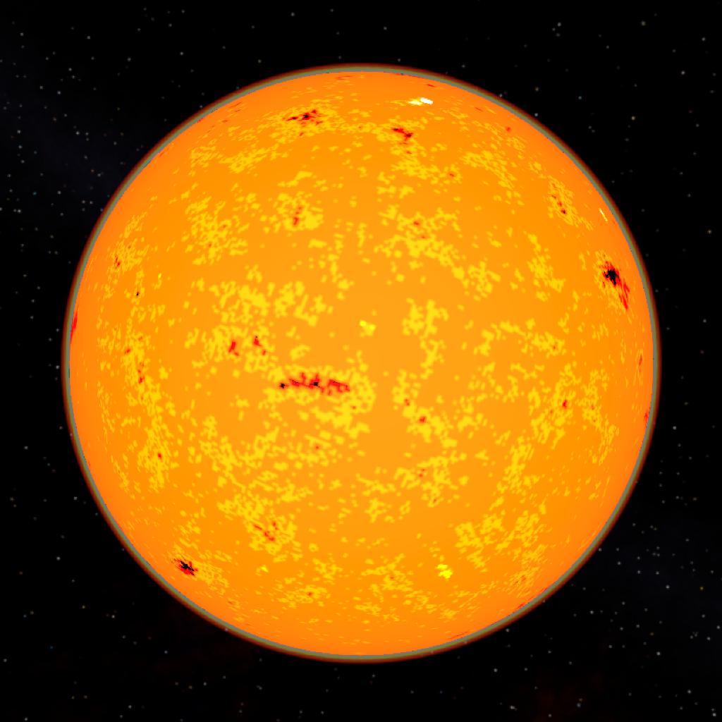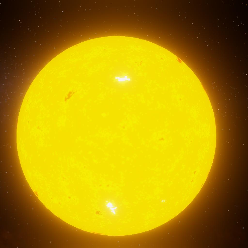 4347 A is an orange dwarf, a K-type main-sequence star, falling between the hotter yellow dwarfs and the cooler red dwarfs. Often called "Goldilocks stars," they are highly stable and considered prime candidates for finding life-bearing planets. With a surface temperature of 5000kelvin this star altough larger than Juno has basically half the temperature while having a highier gravity of 53.2. Around the star there are 9 planets in total, some of which bear biological life.