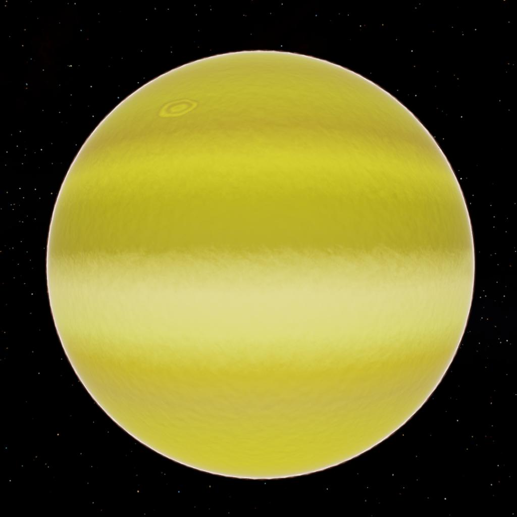 A ringless yellow gas giant, possibly from very toxic gasses that haven't been identified yet, the droods think the moon will eat them. (yes moon im insane trust me)