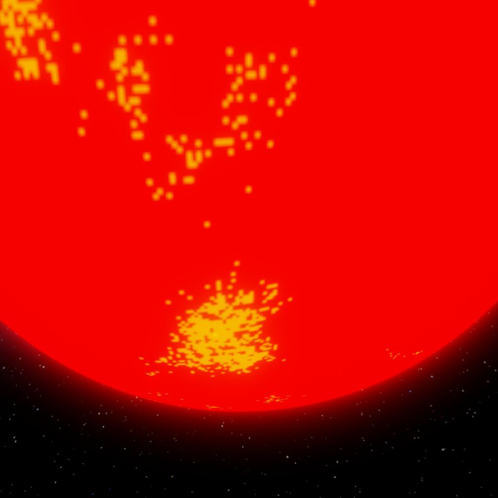 A red supergiant star located 160,000 light years away in the Large Magellanic Cloud, it is the largest known star with a precisely measured radius, at 1,540 times that of the sun, which makes it the 2nd largest star after V538 Carinae, Photometric measurements spanning from 30 years showed a transition from semi-regular to irregular variability during around 2014, which together with the absence or strength of certain spectral lines in spectroscopic observations that would be inconsistent with a red supergiant, led to Munoz-Sanchez et al. (2024) to conclude that WOH G64 A transitioned from a red supergiant to a yellow hypergiant. The lack of a violent outburst and smooth transition would be explained by the presence of a B-type companion forming a symbiotic binary. As a yellow hypergiant, WOH G64 A would be half of its original size, at 800 R☉, and have a hotter effective temperature of 4,700 K with a likely spectral class of either early K or late G.