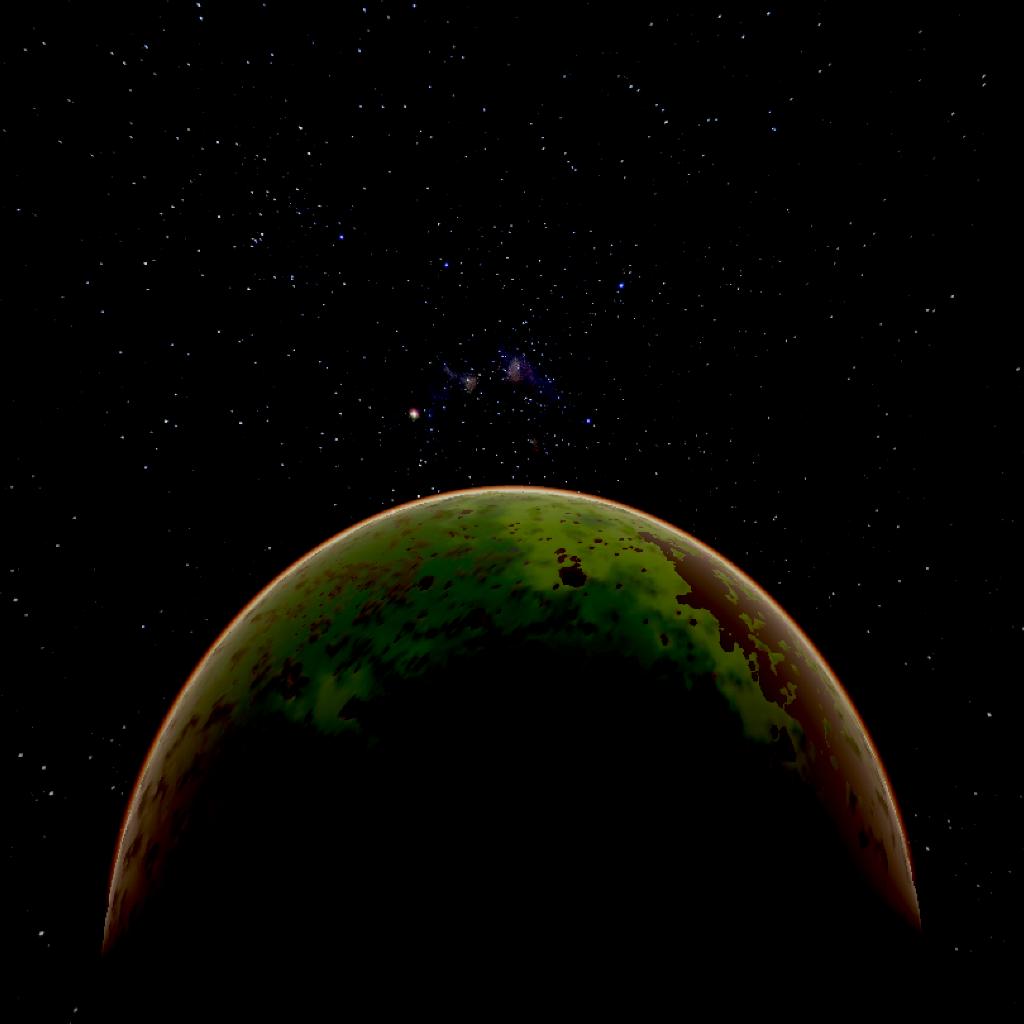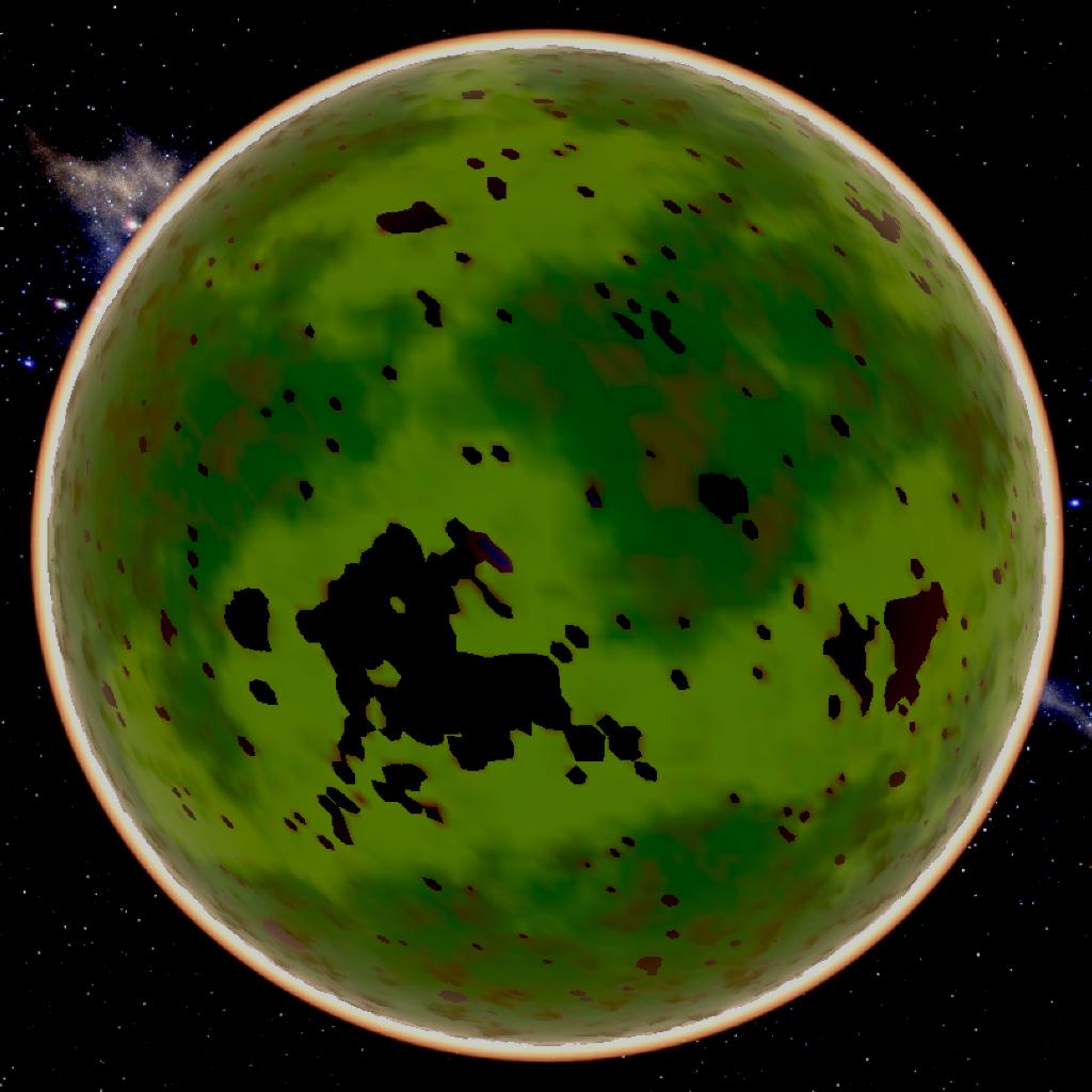 A rocky celestial body covered in dust and craters, with enormous volcanoes and pronounced valles.