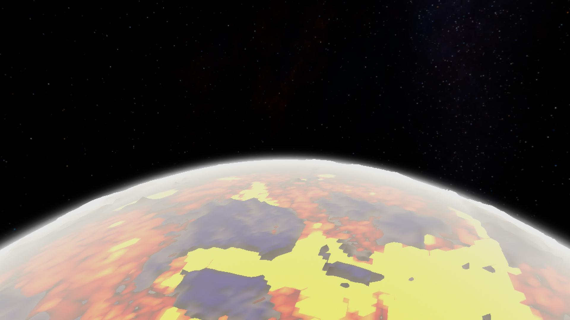 Warning: This planet is mostly covered in lava. Use tinker panel to modify max temperature if you're on to land here.