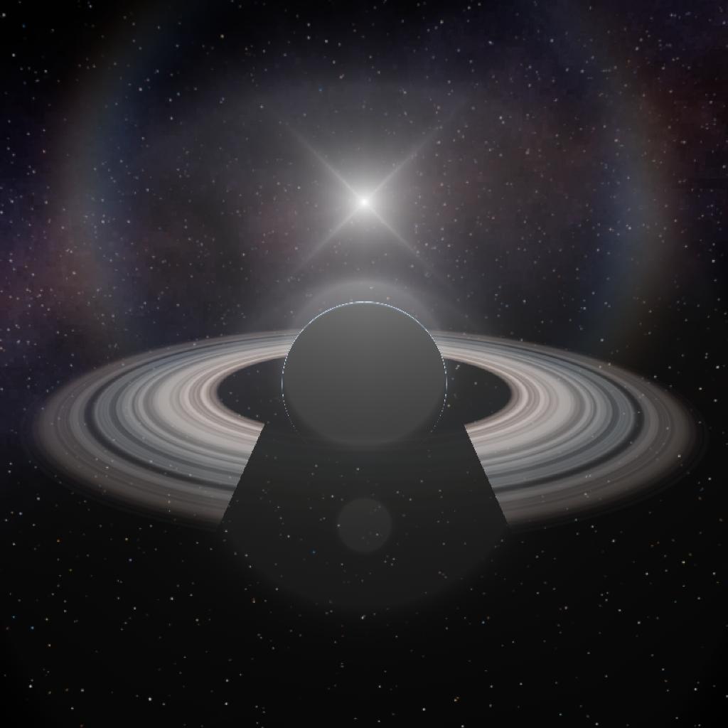 The second planet from Helios, mostly covered in oceans, has a big ring system and 4 spherical moons.