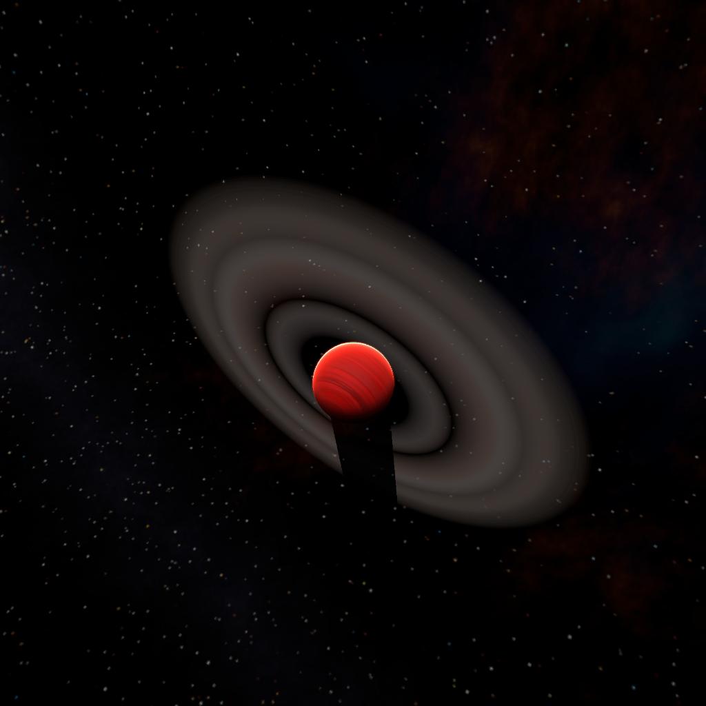 A brown dwarf with a large dust disk around it, also one of the largest known rogue planets.