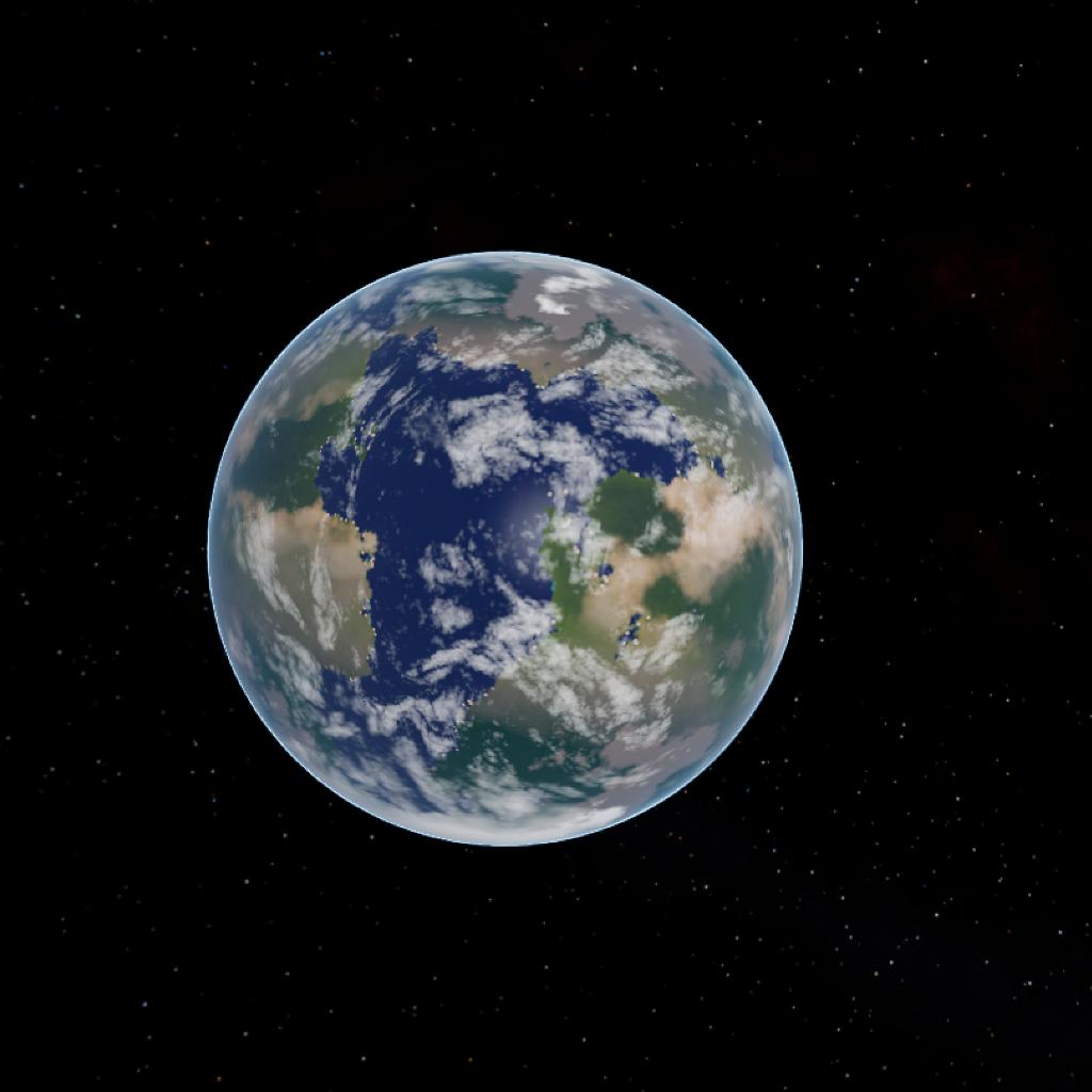 A rocky celestial body with vast oceans, very diverse biomes and a dense atmosphere, covered in what seems to be vegetation.