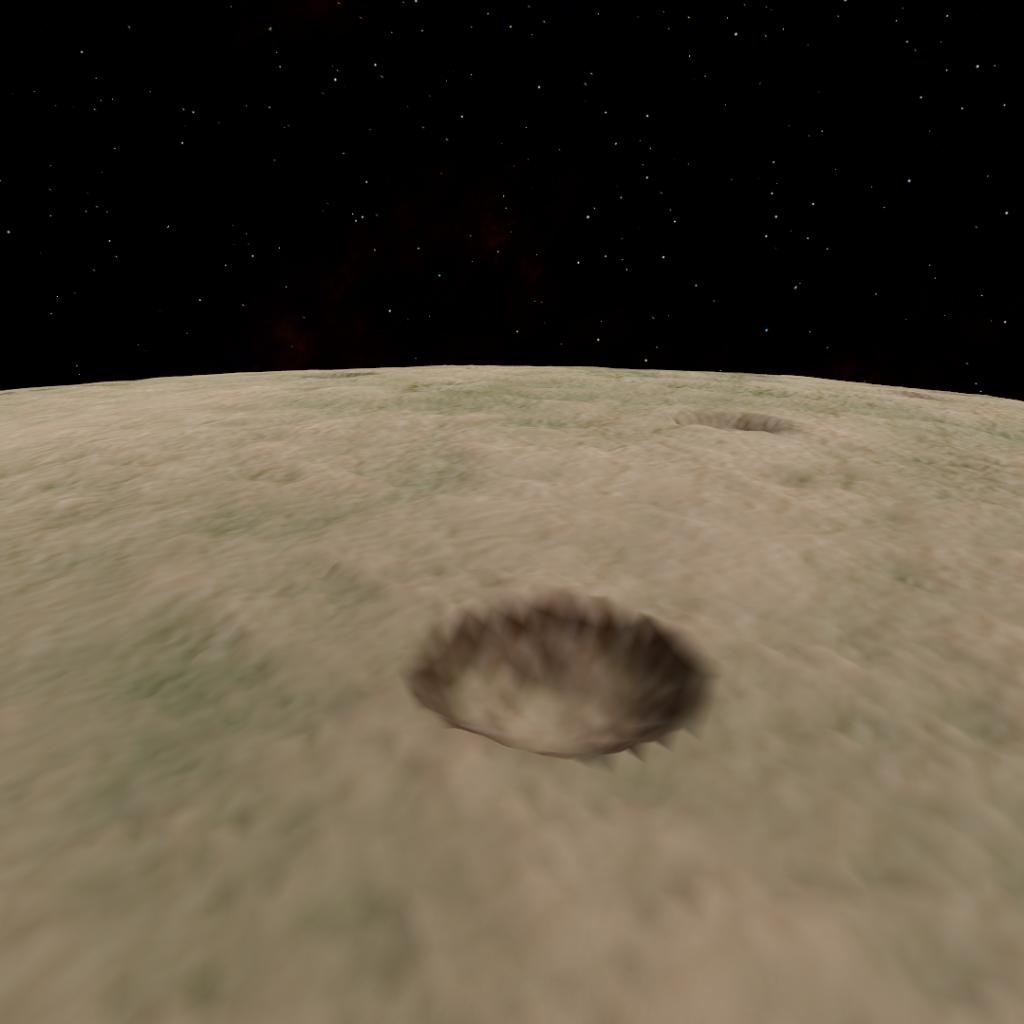 A small moon that orbits retrograde. It has many hills and craters and is very dusty.