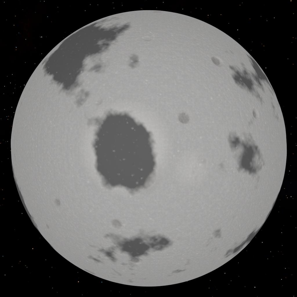 A rocky celestial body covered in fine regolith and craters, with some signs of volcanic activity.