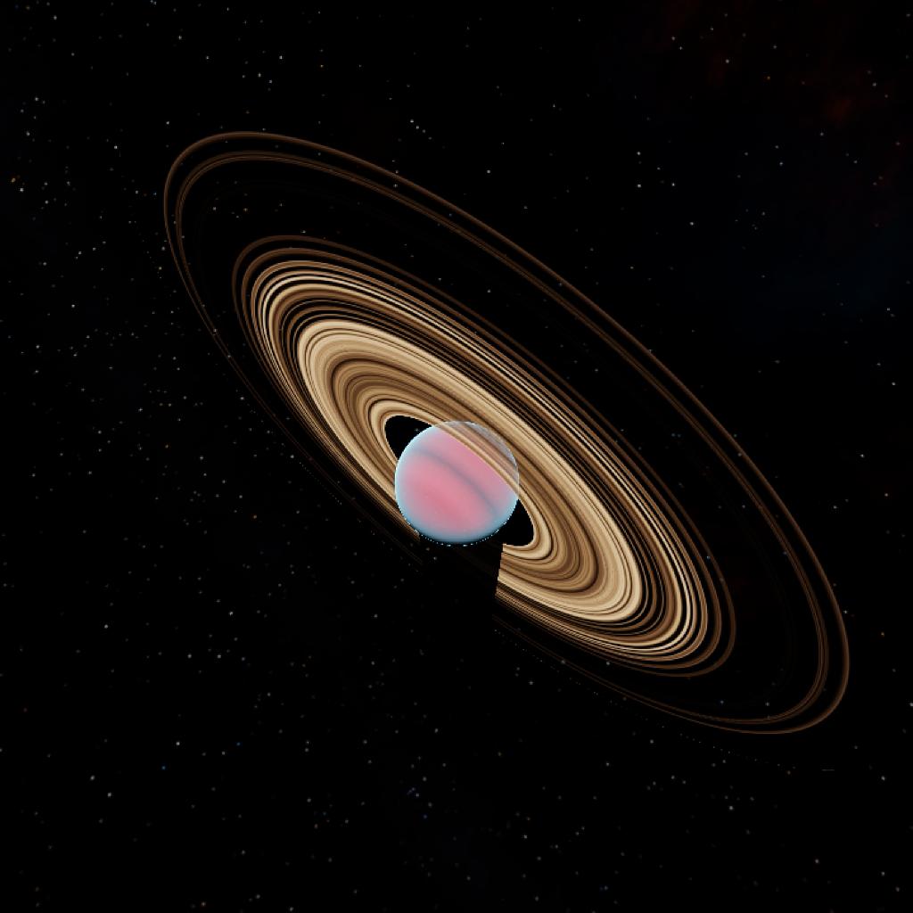 A gas giant with a very chaotic top layer of clouds and enormous storms.