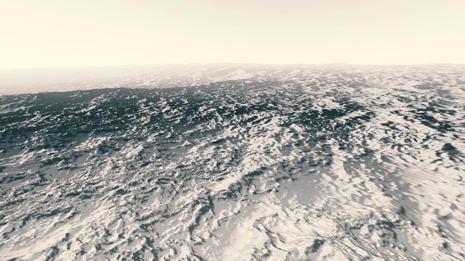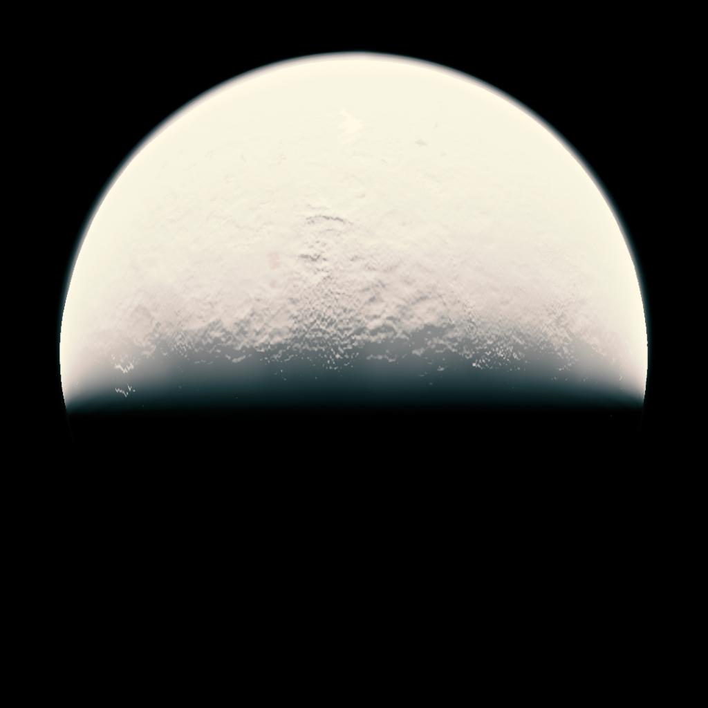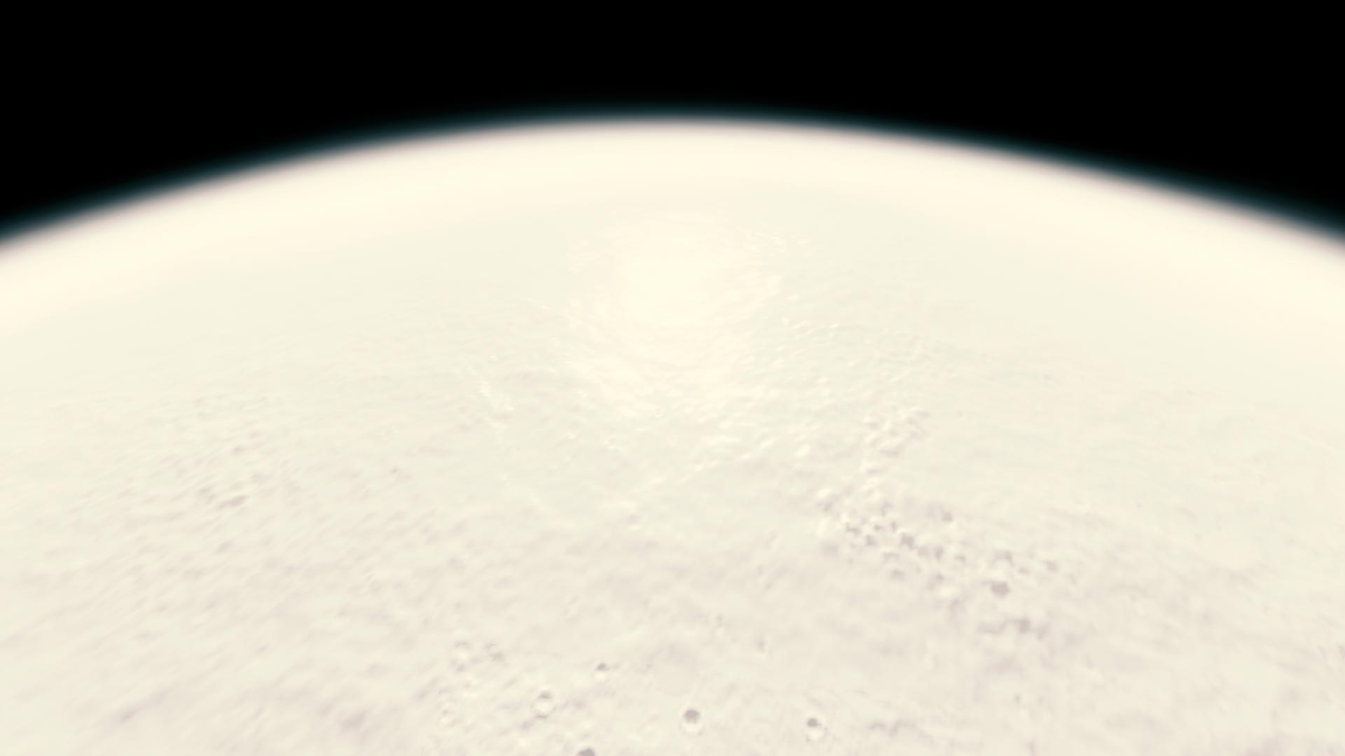 A world made entirely of snow, with a pale white hazy atmosphere composed of mostly ice crystals and flowing snow particles.