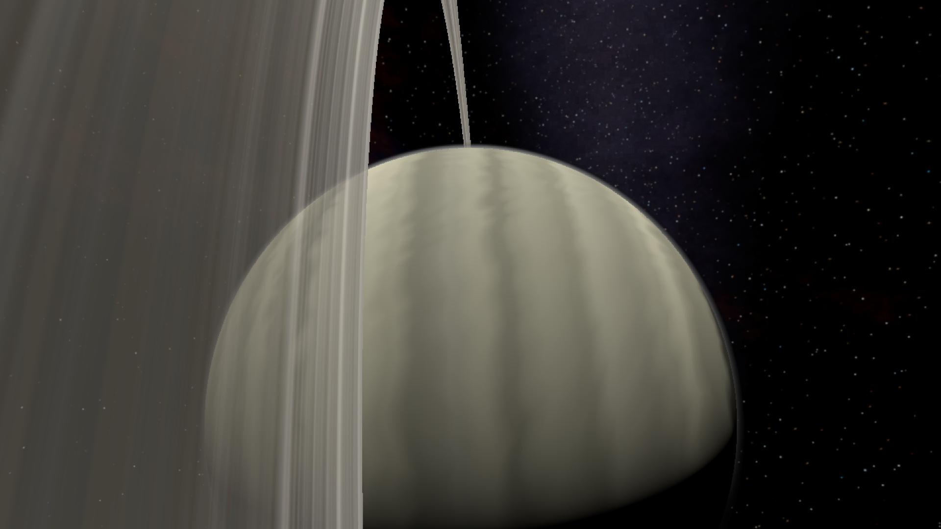 A biege/brownish gas giant with a beautiful ring system with some small moons around it. This is the third largest gas giant in the Aolis system and Is similar in size to Greneoros, slightly larger actually while not having the same colorful auroras since its magnetosphere is less powerful.
