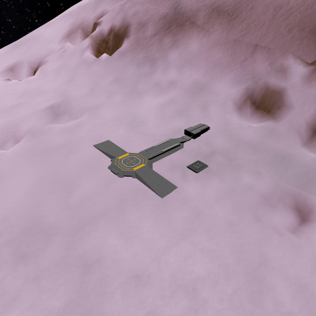An icy ring sheperd of Wiksna. There are many craters on the surface, and rare minerals in the core. As a result, the colinizers of the Dintona System have built a mining station here.