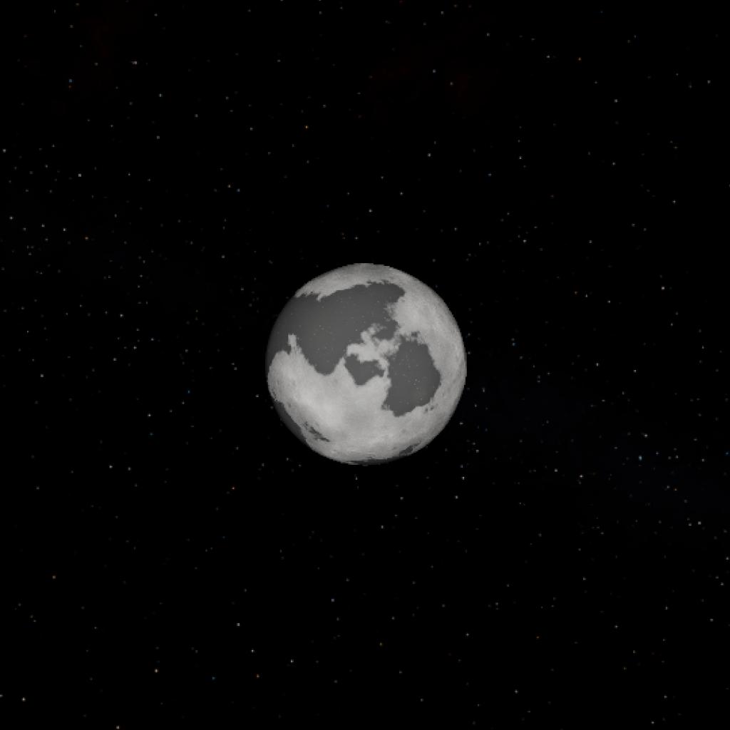 A rocky celestial body covered in fine regolith and craters, showing signs of ancient volcanic activity, with unusually large maria compared to other moons in the system.