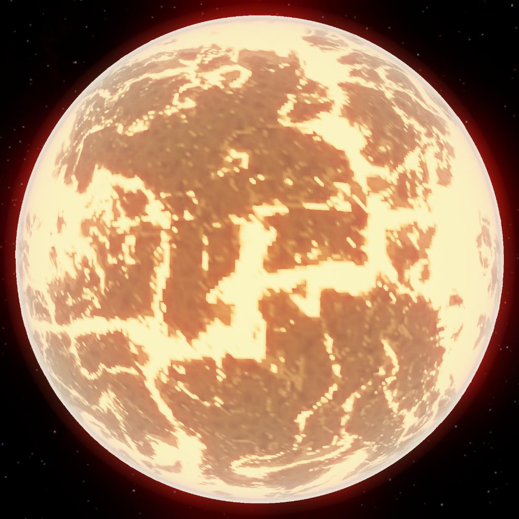 A rocky celestial body covered in cracks containing rivers of lava with a very irregular crust.