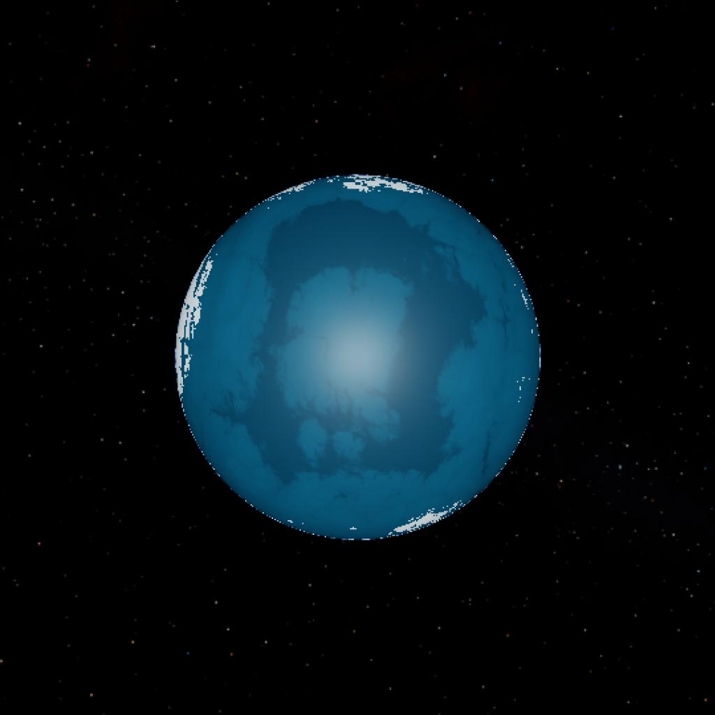 A cold solid celestial body covered in partially cracked ice and many crater impacts. with a thin atmosphere at a pressure of 0.27 kg (31% of that of Arion), its main composition is 54% nitrogen, 45% ozone, 7% hydrogen (at high altitudes), 1% titanium dioxide, and small islands.