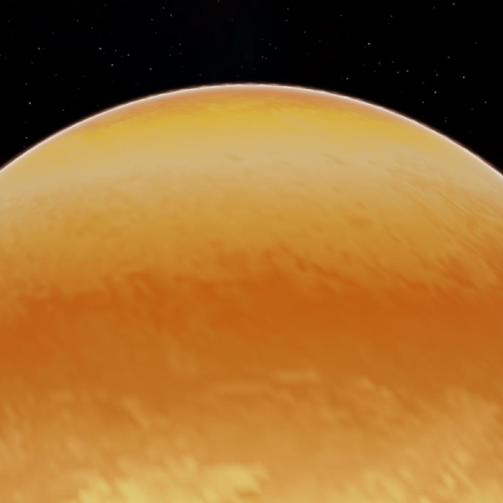 A ringless gas giant with a very chaotic top layer of clouds and enormous storms.