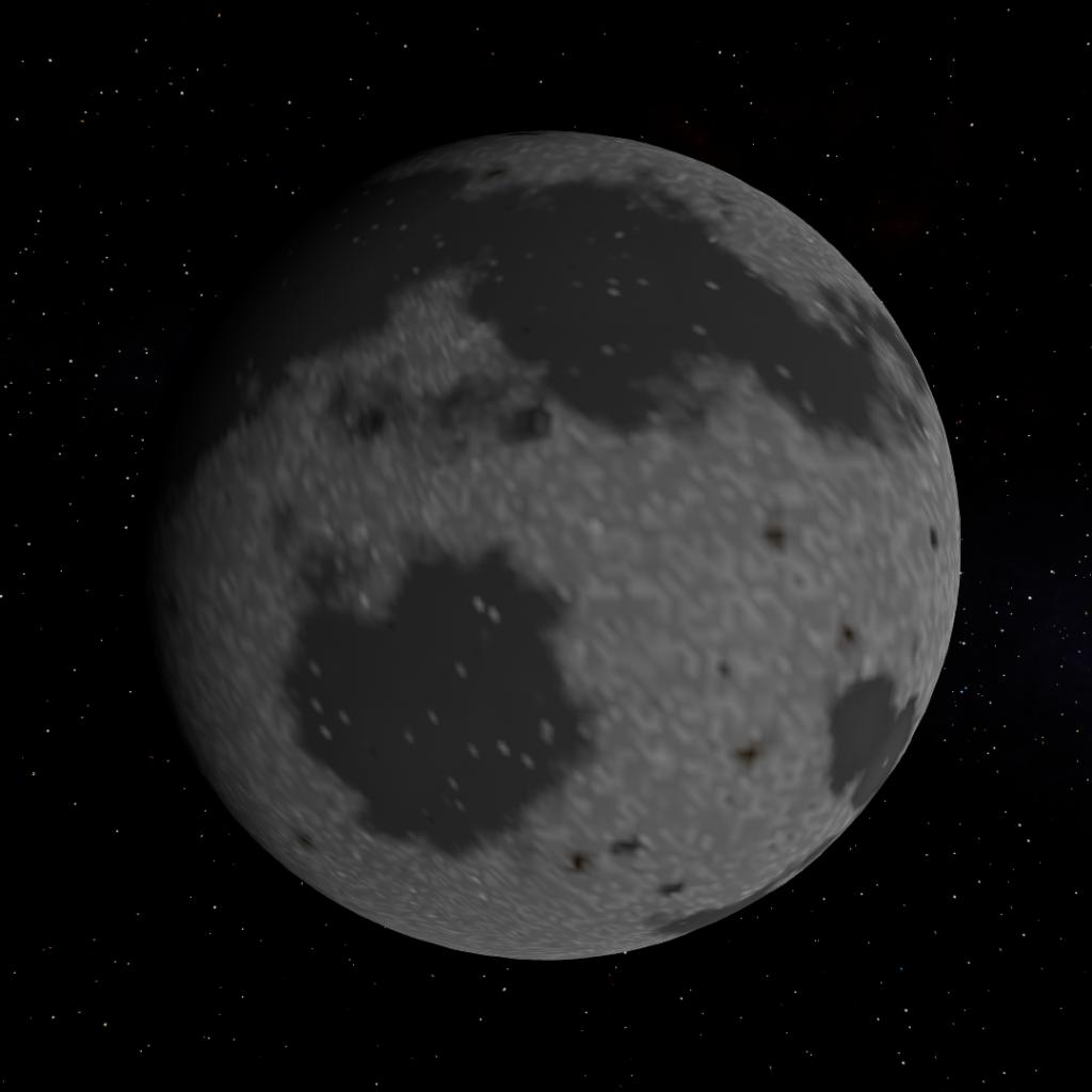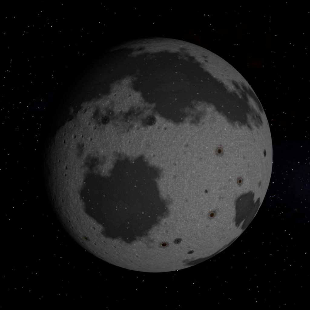 A large moon of a moon with many mares and crater fields. It has similar characteristics to Luna, abeit slightly larger.