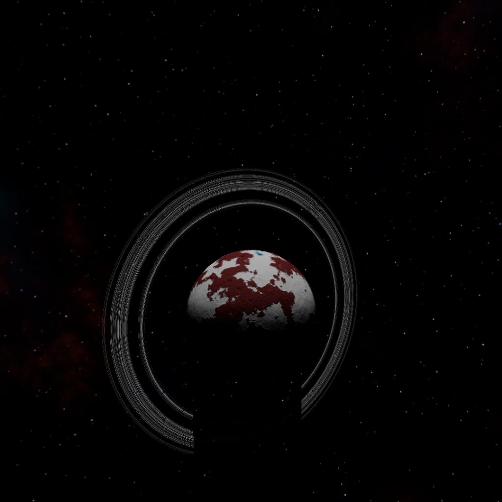 a very small dwarf planet far out of the juno system with rings and surprisingly liquid lakes of helium
