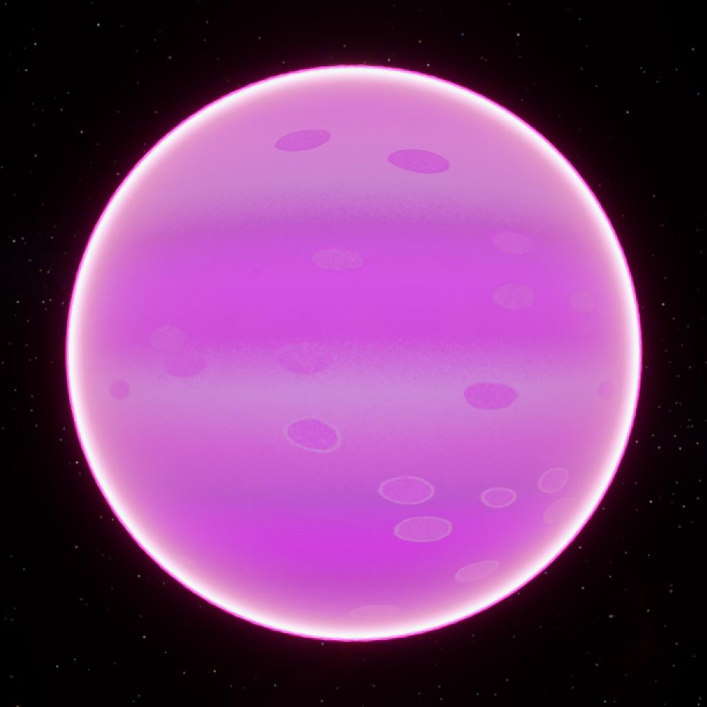 A purple gas giant with a very chaotic top layer of clouds and enormous storms.