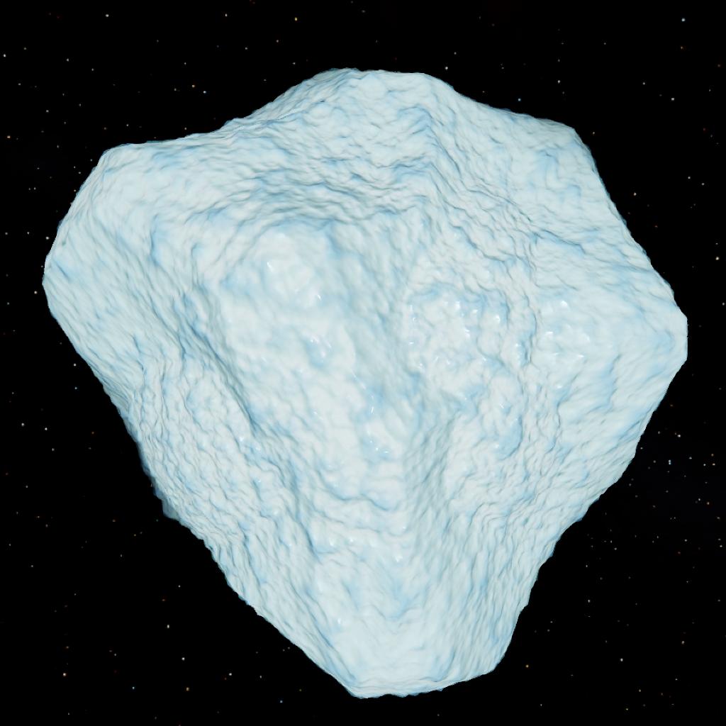 The surface ice forms a dense crystalline lattice, containing trace salts and carbonaceous impurities that tint the body faintly turquoise. When inactive, Kyttaro appears deceptively serene — a sleeping fragment of a frozen ocean drifting through the void. Yet beneath that calm lies a volatile core of compressed gases and brittle ice sheets under tension.