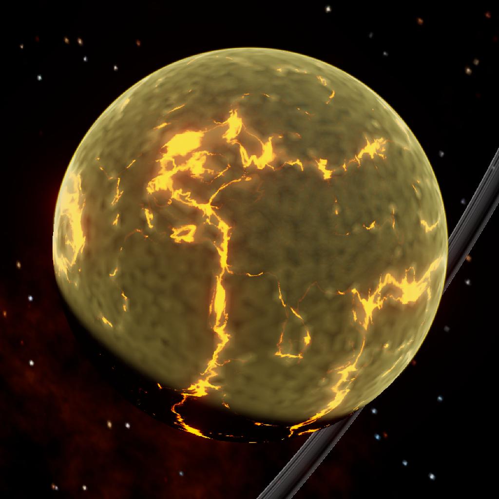 Beta3692-B or Hockor is the first planet of the system. it had a companion at it's formation bit as you can see it got destroyed and formed a ring around the planet. the planet is moonless with an atmosphere full of evaporating rock. large rivers off lava flow on this planet. making the planet one of the most beautiful objects of the beta3692 system.