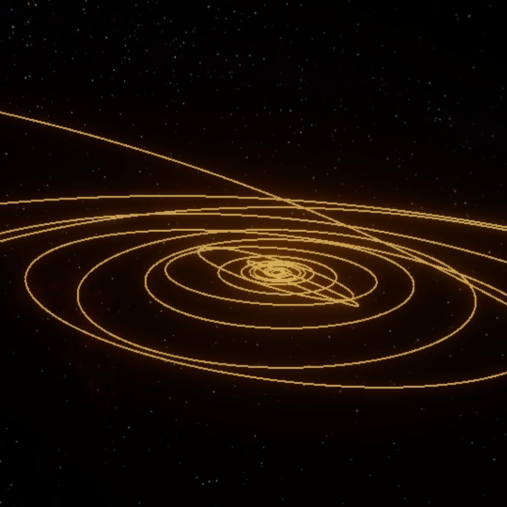 The System That has Planets from KSP dubbed into SA 2138 System. but the orbits are jumbled to make it look cooler. I also made the orbit lines orange because I wanted to make it more cooler that what Ive expect.