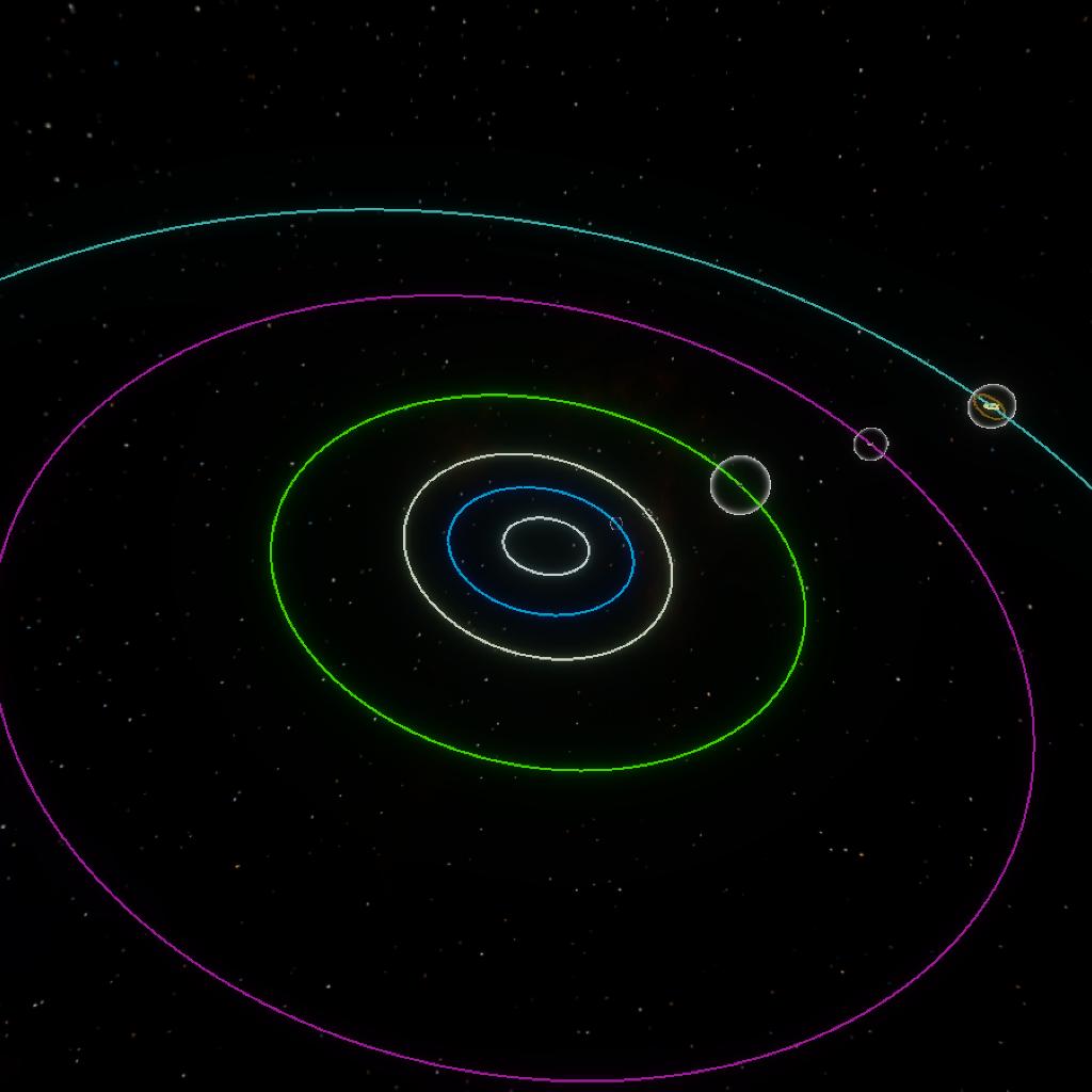 | Name | Parent | Radius | Surface Gravity | Apoapsis | Periapsis |