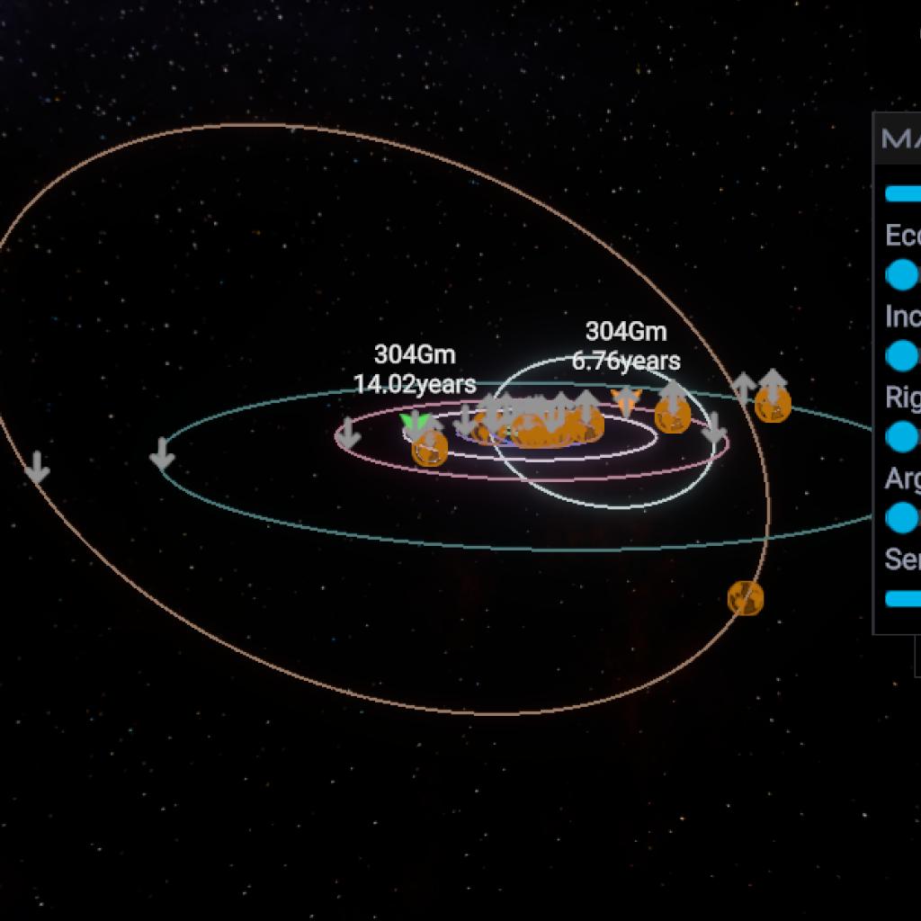 | Name | Parent | Radius | Surface Gravity | Apoapsis | Periapsis |