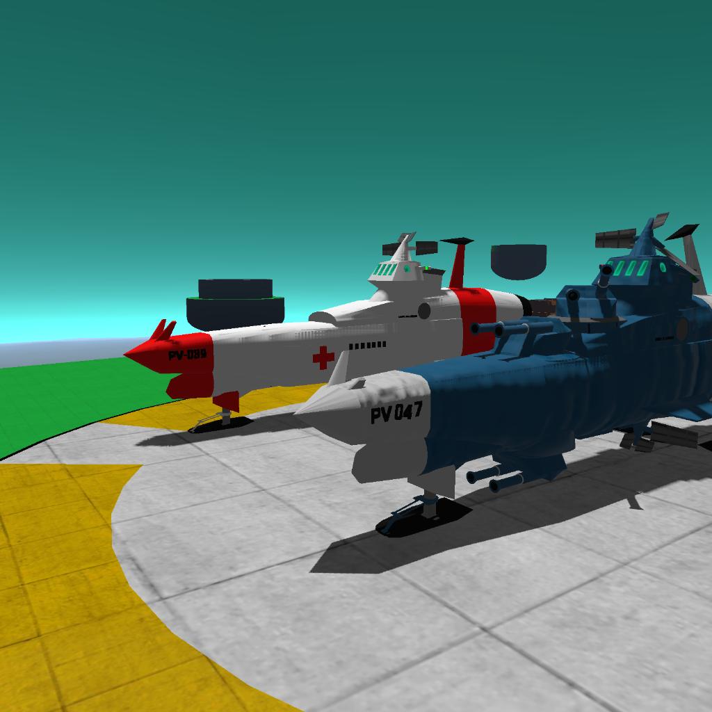 Desain Kapal: Kapal-kapal dalam gambar memiliki skema warna khas kuning dan hitam. Fokus pada desain lambung kapal yang aerodinamis dan penempatan senjata yang seimbang untuk pertempuran di lingkungan air atau luar angkasa, tergantung pada misi spesifik.