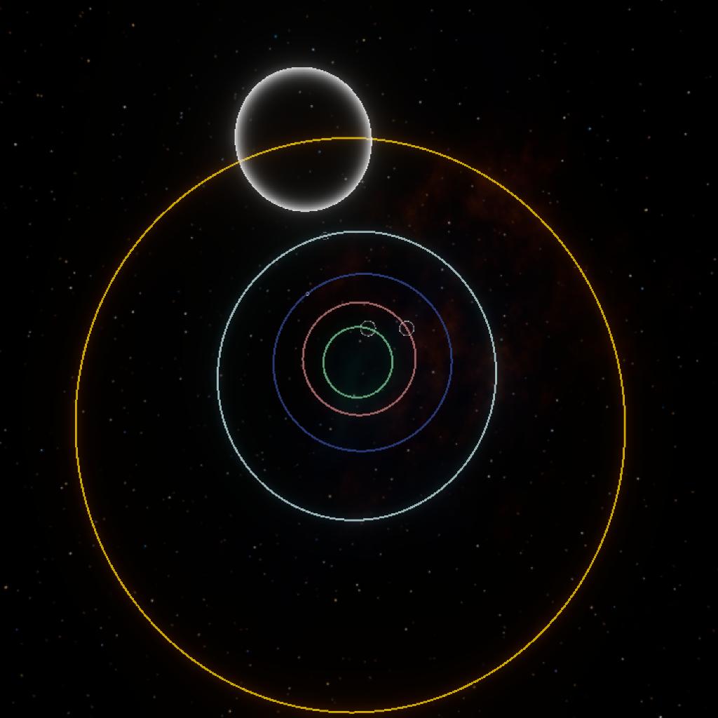 | Name | Parent | Radius | Surface Gravity | Apoapsis | Periapsis |