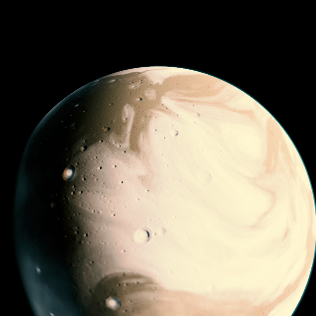 | The tropical moon of junes | Junes | 350 km | 1.6 m/s | 50,385 km | 42,330 km |