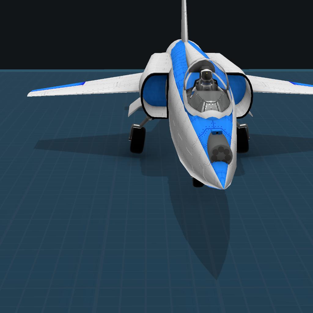 This is a jet with a 7-barrel revolving autocannon. AG 4 to activate gun. This has an unfinished interior so please make succesor but feel free to give credit to [me](https://www.simplerockets.com/u/dzanos), [TN920,](https://www.simplerockets.com/u/TN920) [& AAastronomy.](https://www.simplerockets.com/u/AAastronomy) Credit goes to TN920 for the gun and AAastronomy for the clock MFD again.