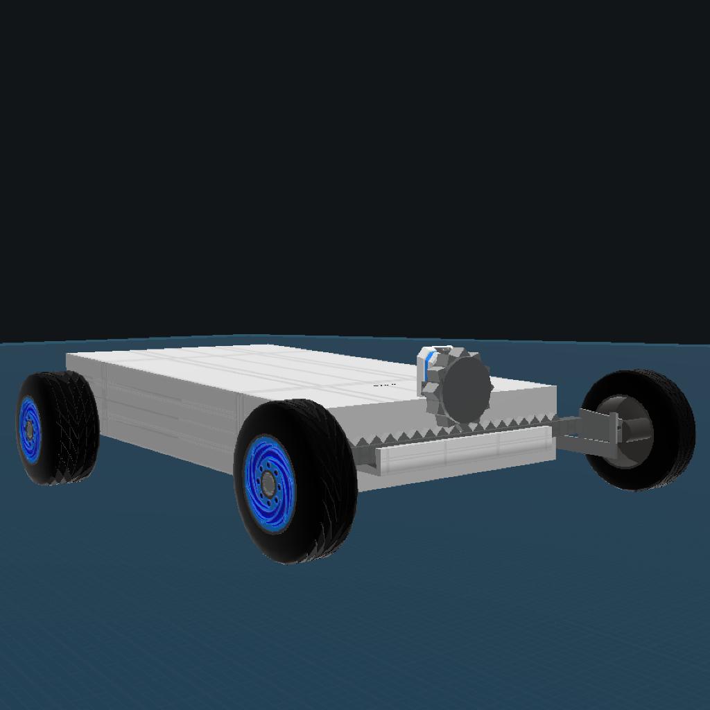 This is one of my contraptions that are totally useless, but still cool. This righ there is a steering system controlled by a single rotator, and not by any steering by the wheels. The the throttle moves the craft forward and the yaw input turns a rotator, which slides a shaft, and that shaft controls the steering.