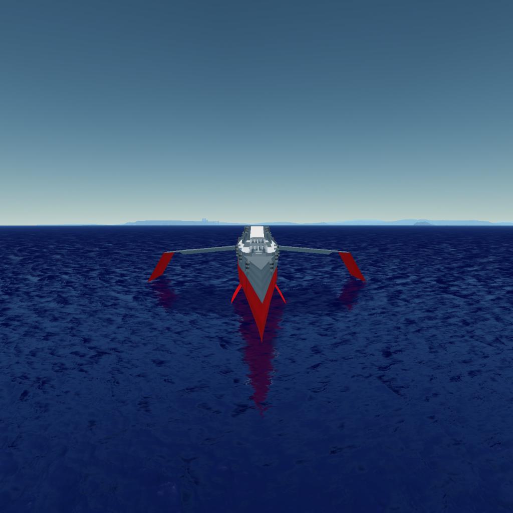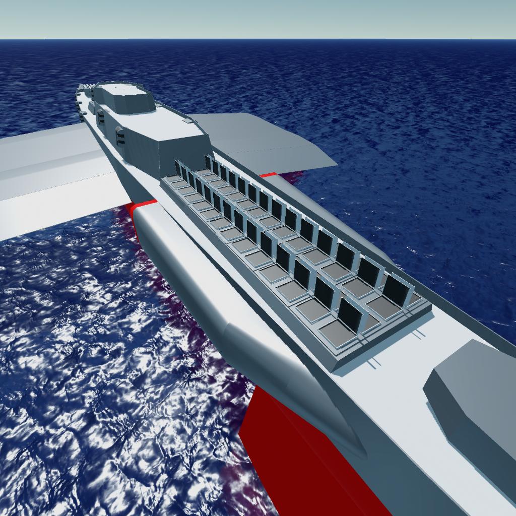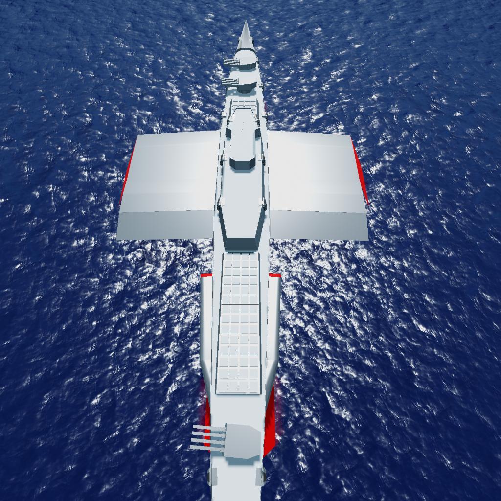 Gear up and ready for action! The complete 13000 tons ekranoplan battleship is ready for deploy, with its astonishing 657 knots cruising speed, 12 main railguns, 126 advanced VLS silos, and many more.